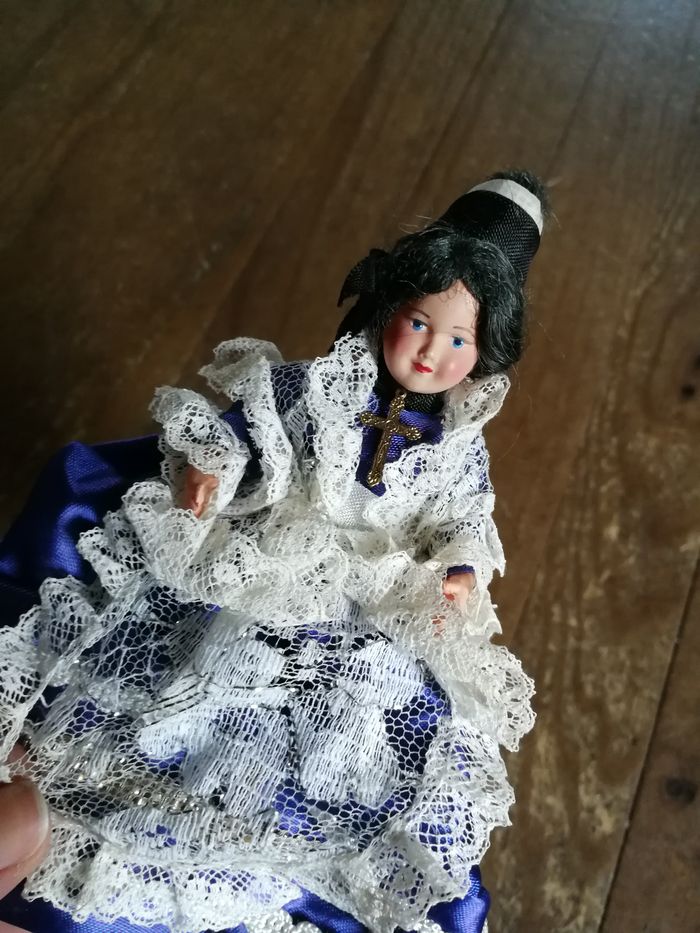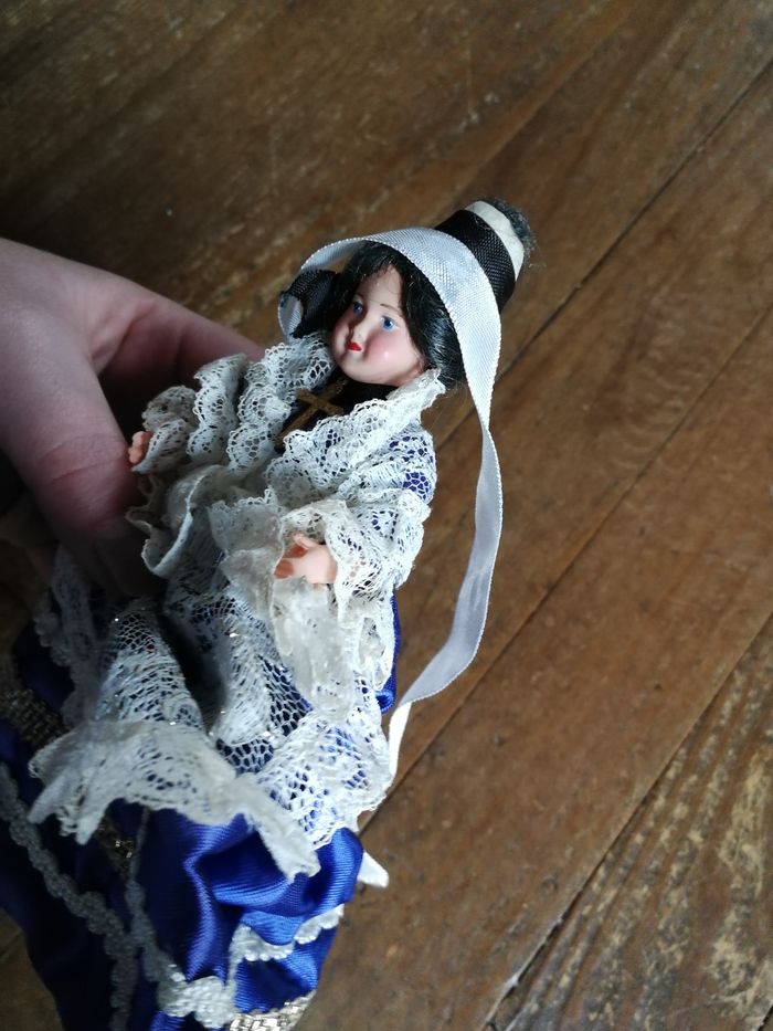 Poupée folklorique bretonne en robe bleue à dentelles - photo numéro 1