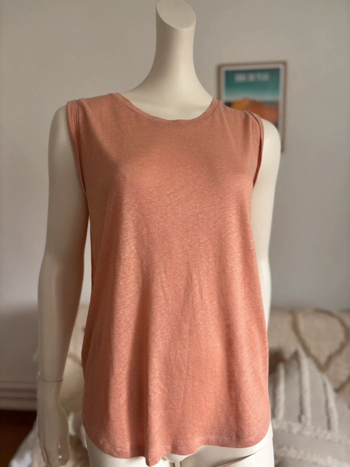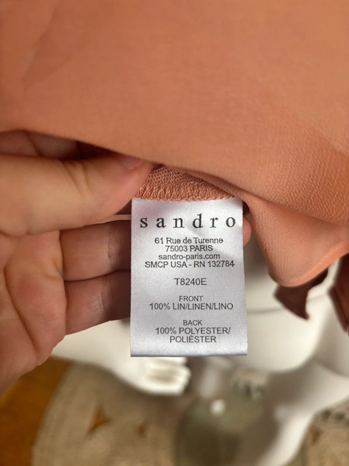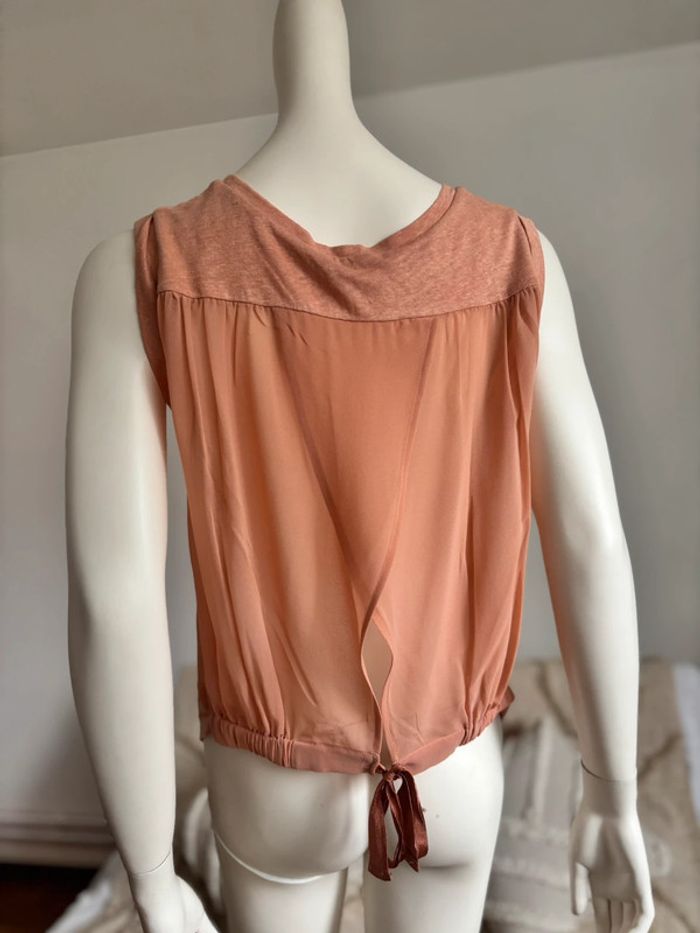 Tshirt couleur pêche de ma marque Sandro en bon état. Le dos est en mousseline transparente en matière superposée et lacée dans le bas. #sandro