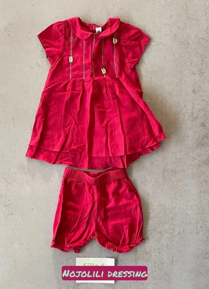Ensemble robe rouge et bloomer 6 mois - photo numéro 2