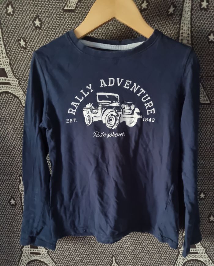 T-shirt marine à manches longues imprimée, taille 8ans marque Kiabi.