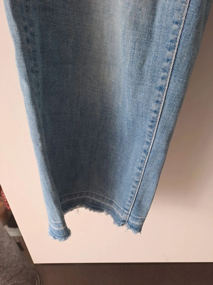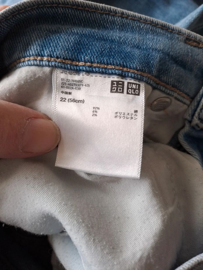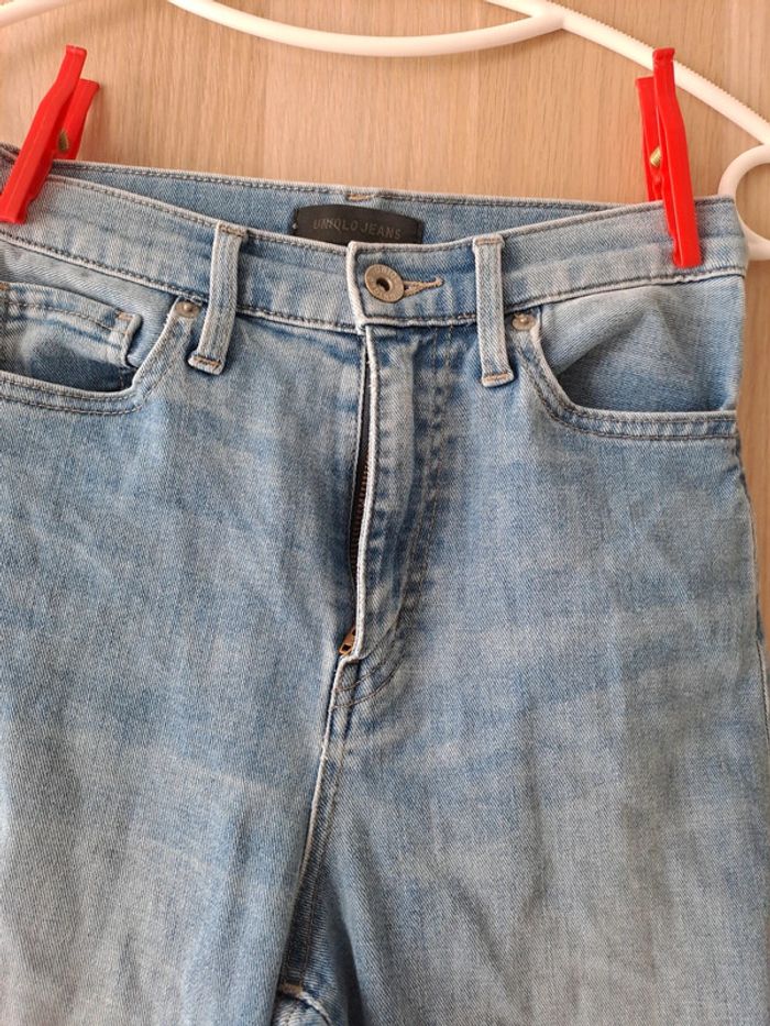 Jean japonais de la marque uniqlo. Court et droit. Bas effiloché Taille à plat devant 31.5 cms