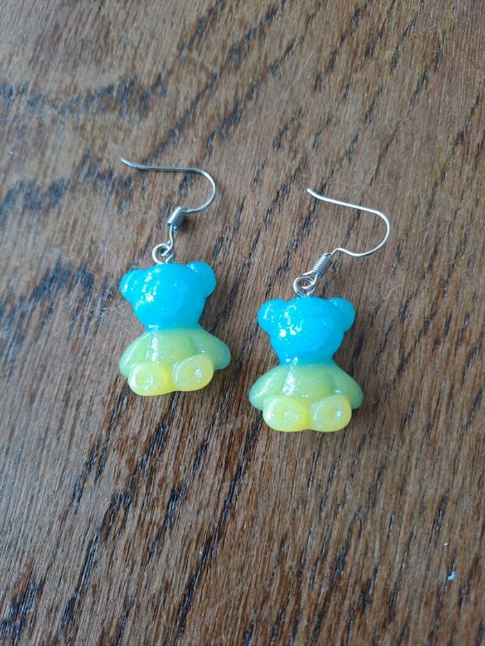 Boucles avec perle nounours bicolore aspect brillant pailleté