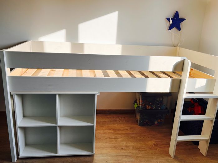 Lit en hauteur en bon état avec bureau et étagères intégrées . Sommier compris 90X200