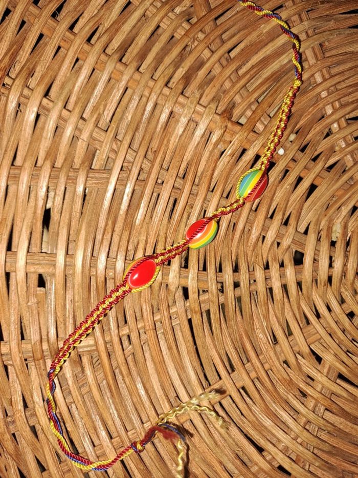 Bracelet à nouer avec 3 perles rayées Macramé et tissage #bijouxmadamepirate