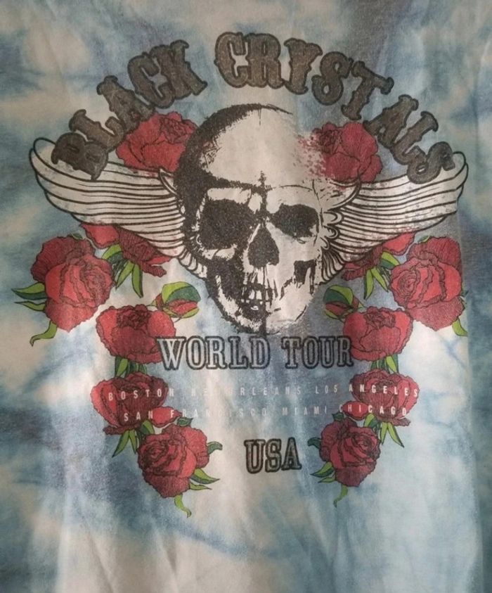 T shirt ouvert dans le dos pour un look rock. Crane ailé et roses Plutôt long #36madamepirate