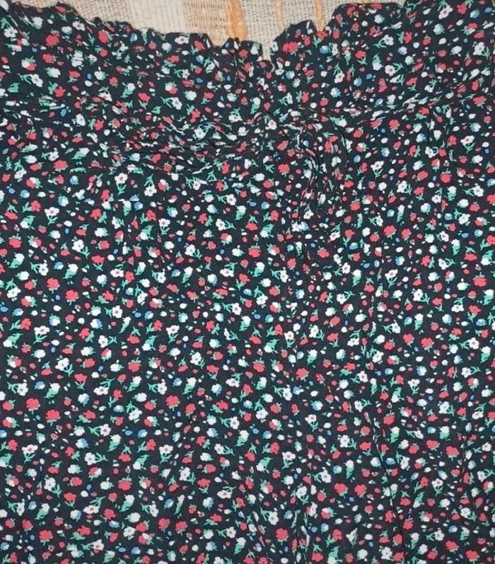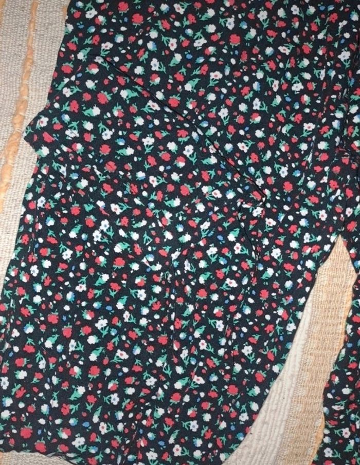 Pantalon fluide fleuri. Tres peu porté Smocks a l arrière. Petite ceinture à nouer devant. Poches. Longueur jambe 93cms. Entrejambe 65 cms . Taille a plat donc élastique non tendu 31cms devant #16ansmadamepirate #Smadamepirate