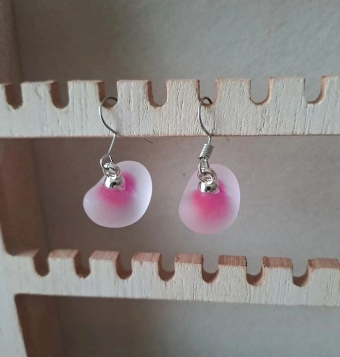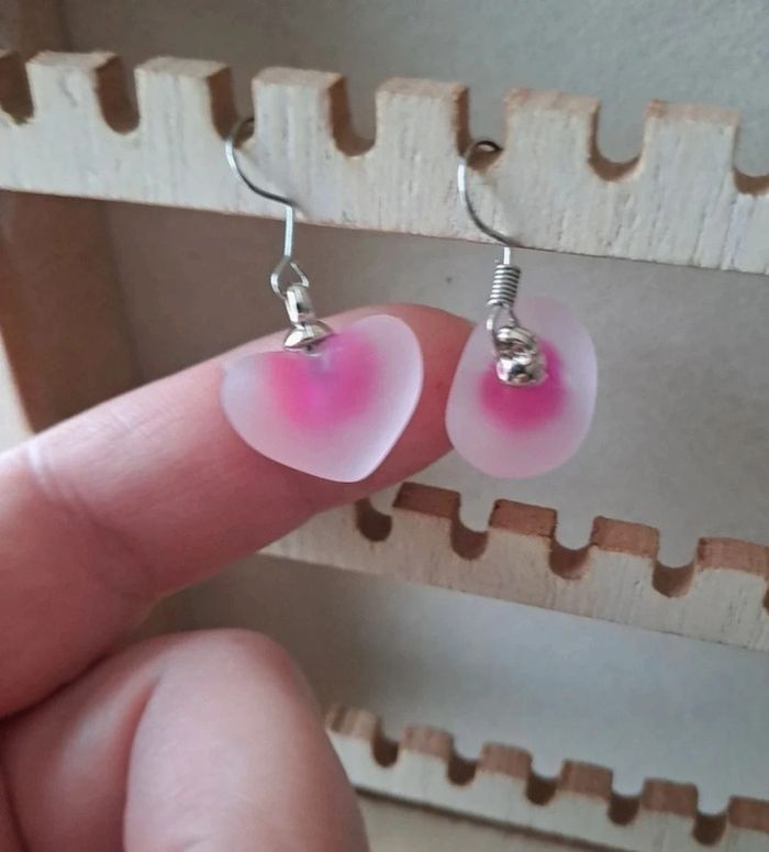 Très jolies boucles roses avec un cœur aspect givré