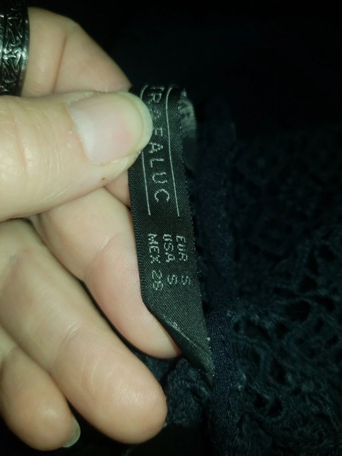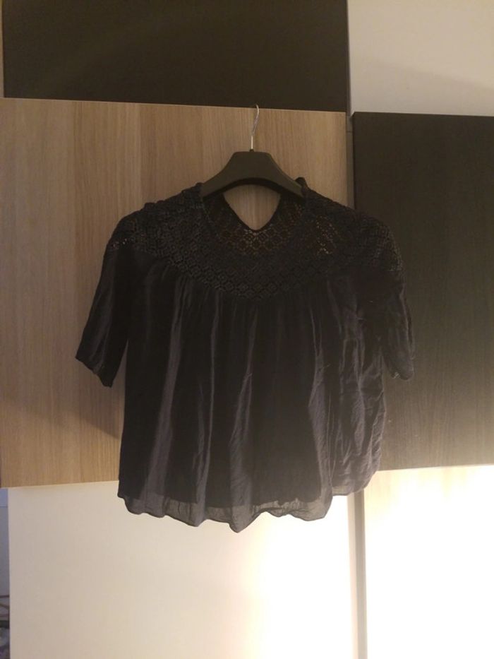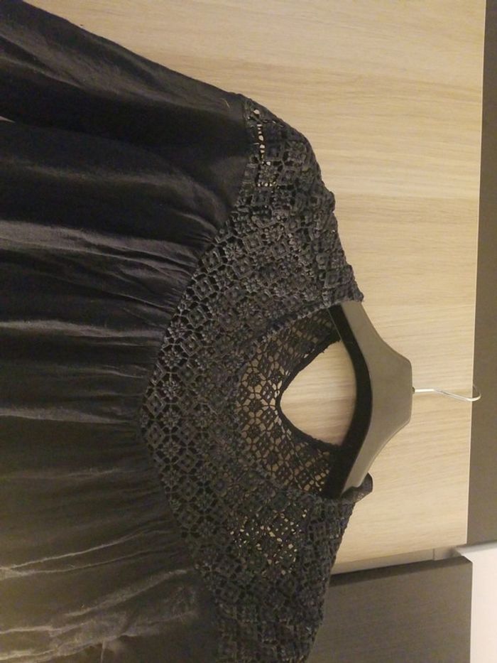 Petit haut noir large. Haut macramé et bas cotonnade. Se ferme au dos par petit bouton #Smadamepirate