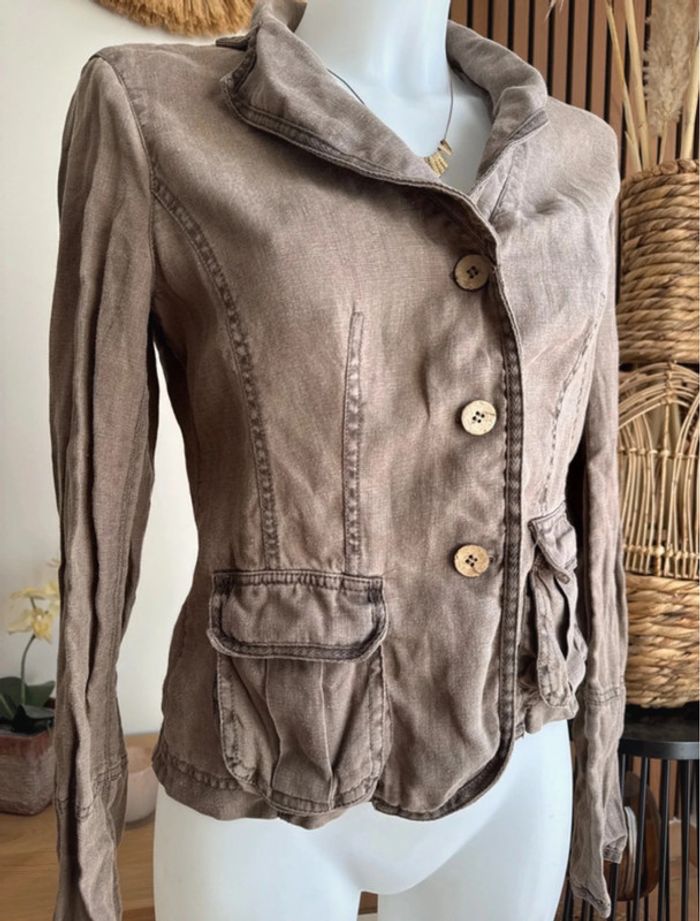 Blazer marron Manches longues Fermeture 3 boutons 2 poches latérales Boutons sur manches Boutons de rechange sur étiquette intérieure #labrune_33femme #labrune_33femme36 #labrune_33femmeblazer #labrune_33femmeveste 📤 envoi rapide 💸 réduction sur lot activée # dressing trié par genre et taille