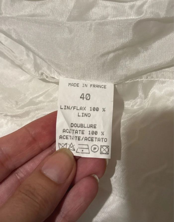 Veste de tailleur en lin blanc Fermeture 2 boutons 2 poches Épaulettes porté 1 fois, comme neuf Prix neuf 160€ #labrune_33femme #labrune_33femme40 #labrune_33femme38 #labrune_33femmeblazer 📤 envoi rapide # dressing trié par genre et taille 💸 réduction sur lot