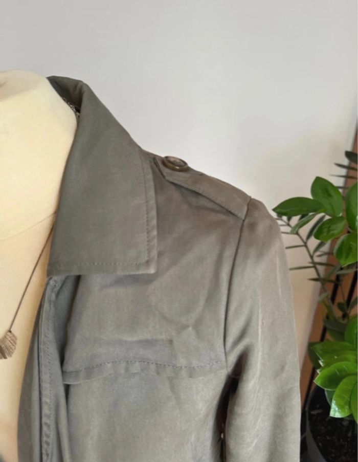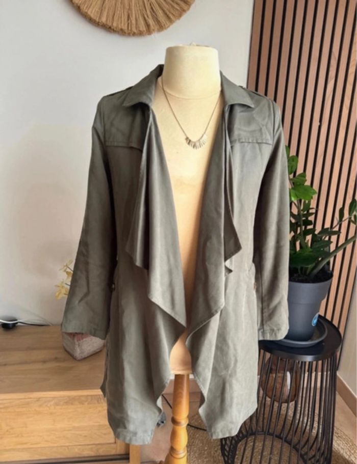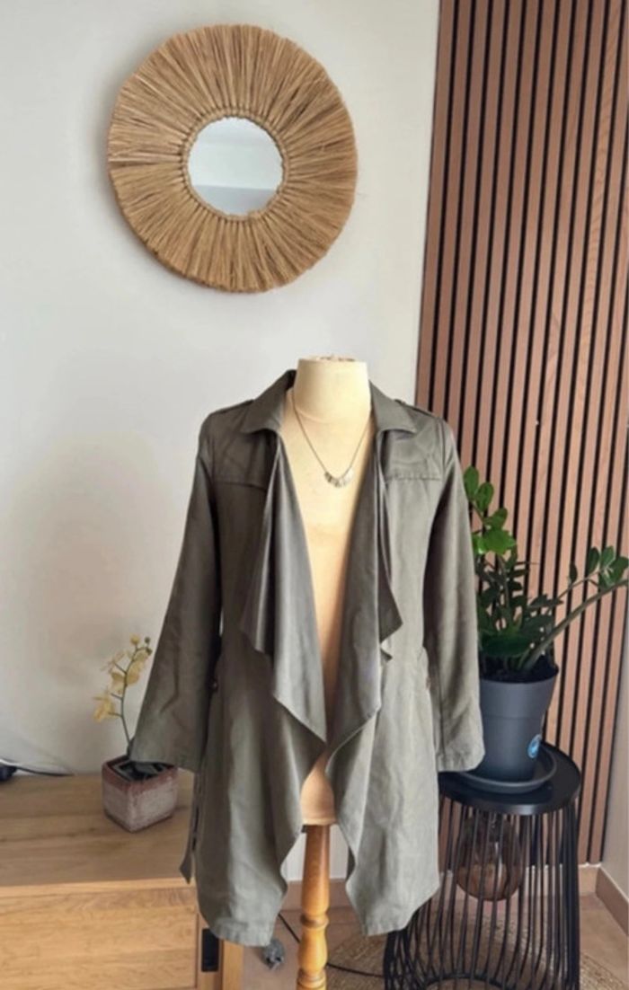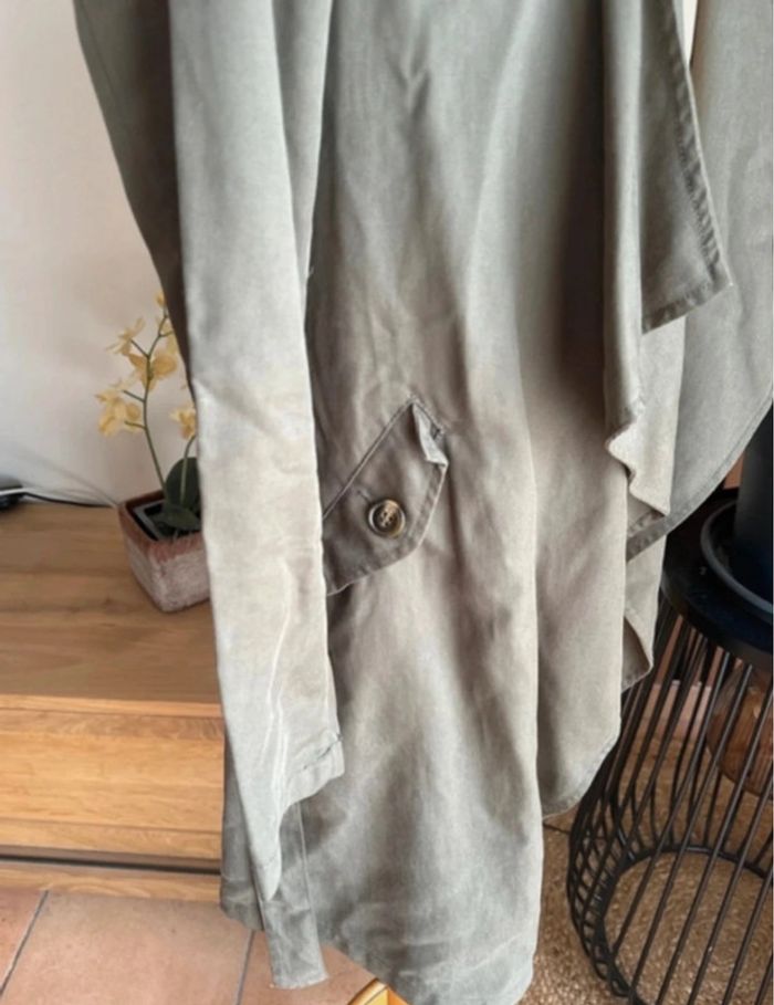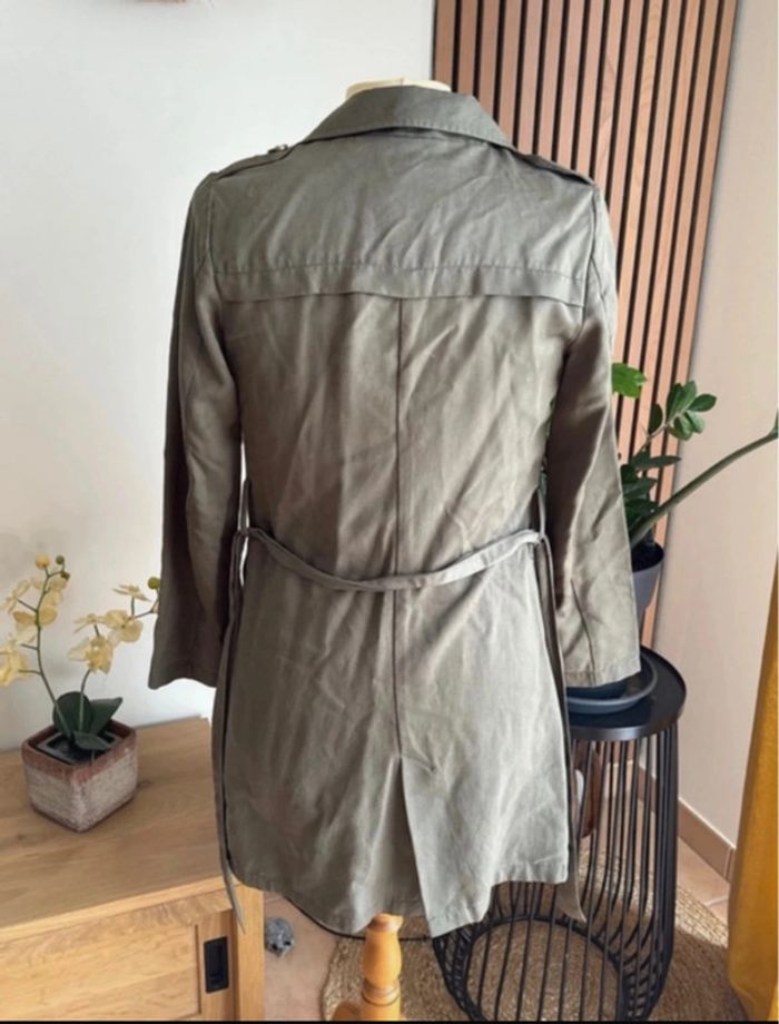 Trench kaki Lien à la taille Poches latérales fermeture bouton 1 petit fil tiré sur le haut d’une manche mais ne se voit pas Passant recousu Taille 34, convient à un petit 36 100% lyocell #labrune_33femme #labrune_33femme36 #labrune_33femme34 #labrune_33femmetrench 📤 envoi rapide # dressing trié par genre et taille 💸 réduction activée sur les lots