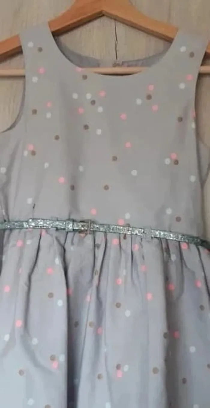 Robe doublée NKY 8 ans gris à pois multicolore état neuve - photo numéro 2