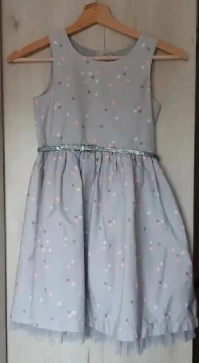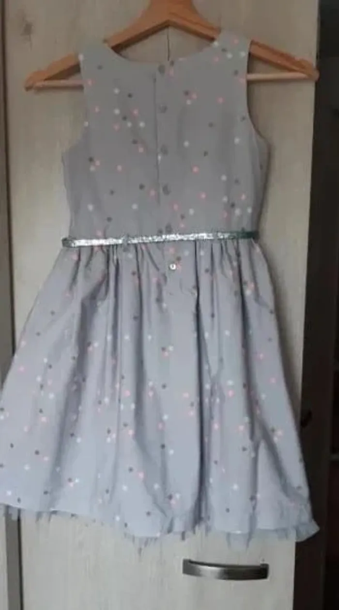 PRIX DE VENTE FERME MERCI Robe doublée NKY Doublé matière satinée bas en tulle Gris multicolore avec ceinture bleue pailletée 8 ans État neuve (très très peu portée) Pour visualiser tous ce que je possède en 8 ans : #ambre626908ans