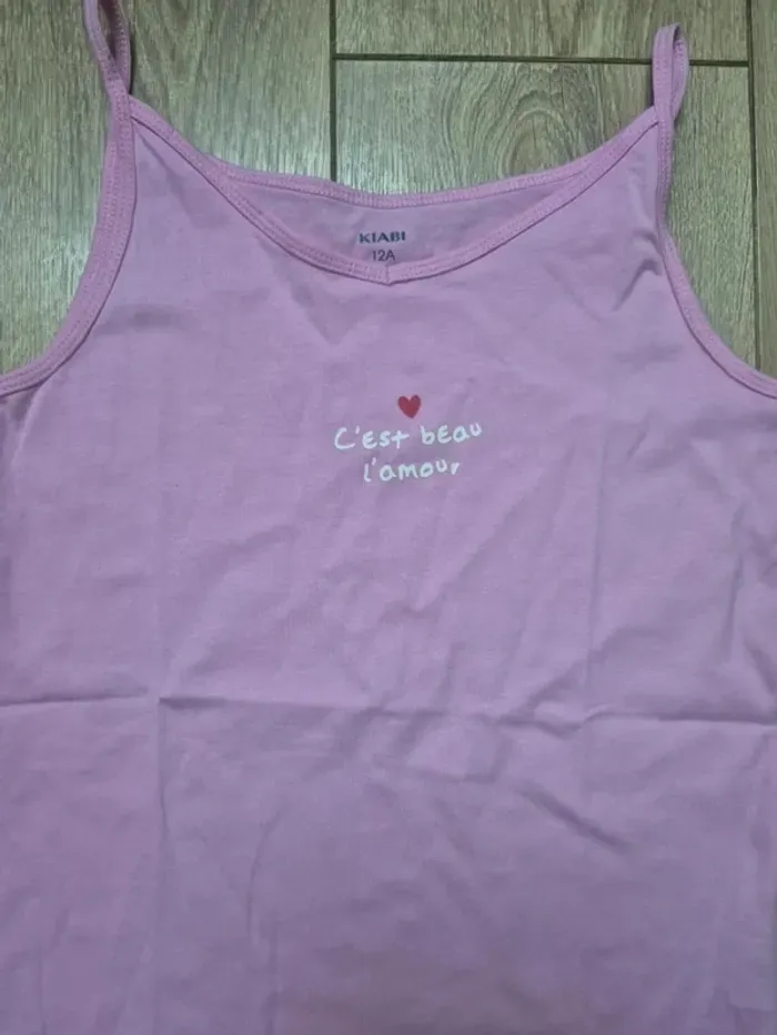 Pyjama court kiabi rose clair "c'est beau l'amour" 12 ans neuf jamais porté - photo numéro 4