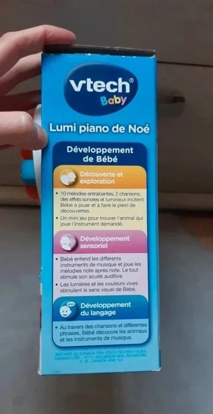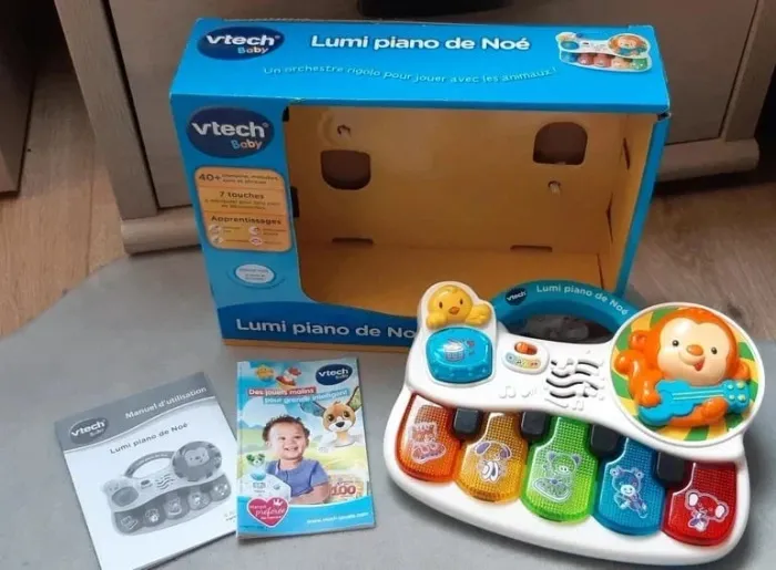 5 touches piano lumineuses pour découvrir les animaux et les instruments et jouer avec des mélodies.