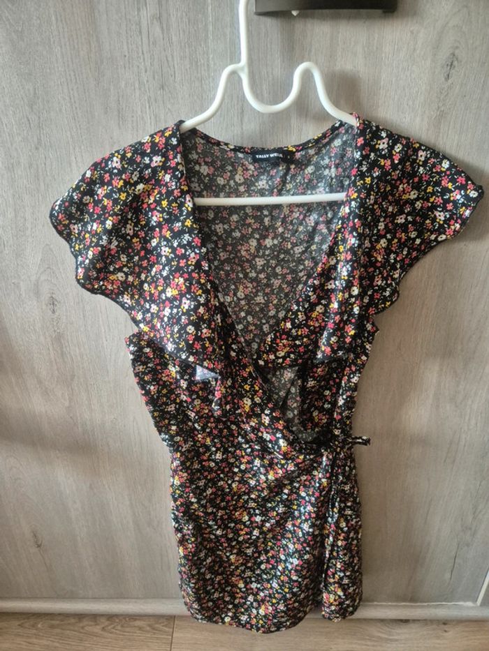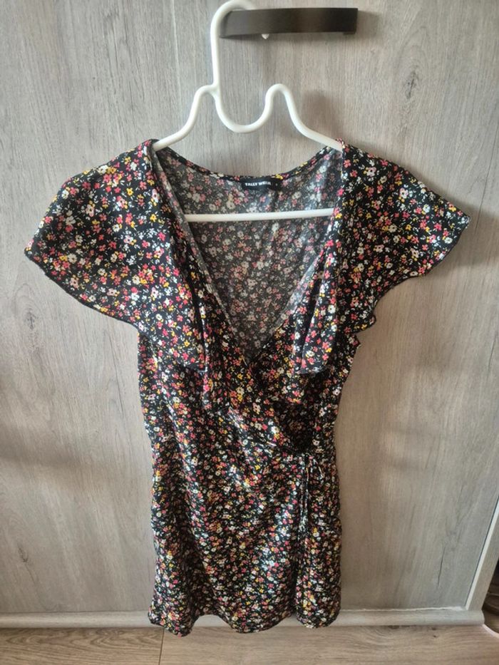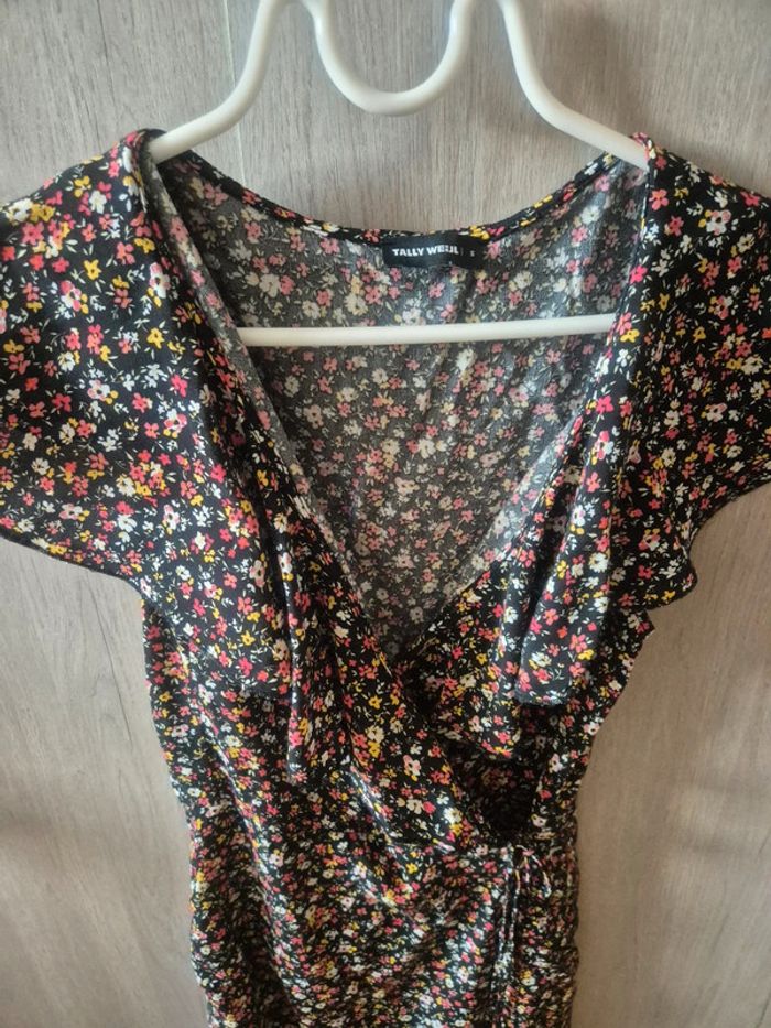 JE N'ACCEPTE PAS D'OFFRE MERCI Robe avec short intégré Modèle portefeuille "tally weijl" Noire motif fleuri taille S neuve jamais portée