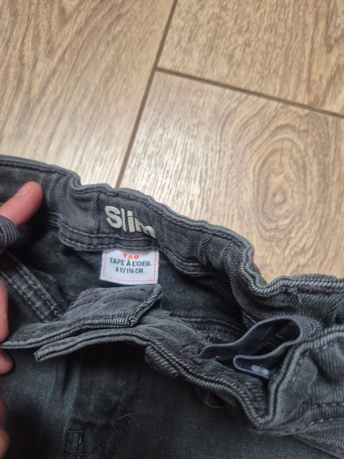 Pantalon jeans slim tape à l'œil gris 6 ans en très bon état - photo numéro 3