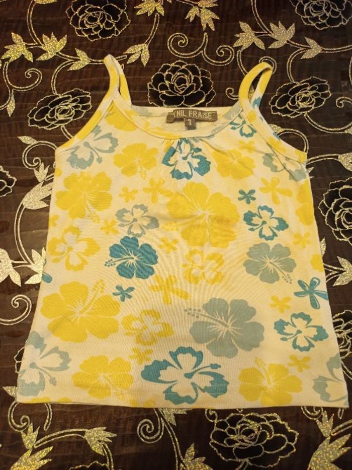 Débardeur fille blanc imprimé fleurs jaunes et bleues 3 ans