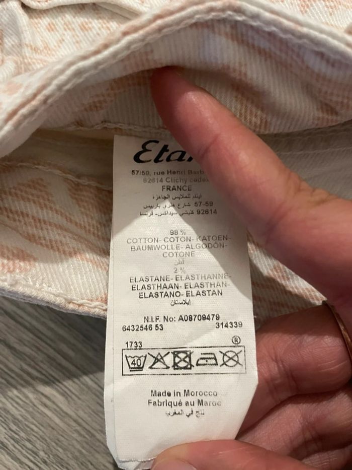 Short Etam taille 36 avec joli imprimé ethnique dans des tons doux. Coupe courte et confortable, parfaite pour l’été, la plage ou un look décontracté. Bords effilés pour un style tendance et moderne. Se porte facilement avec un top uni, un débardeur ou une chemise légère. 📏 Taille : 36 🎯 État : Très bon état ✨ Détails : motif géométrique/ethnique, franges effilées, 5 poches 💌 Envoi rapide et soigné 📦 Regroupement possible avec d’autres articles de ma boutique pour réduire les frais de port #shortEtam #shortEthnique #lookÉté #shortCasual #T36 #modeFemme #plage #vacances #lookDécontracté
