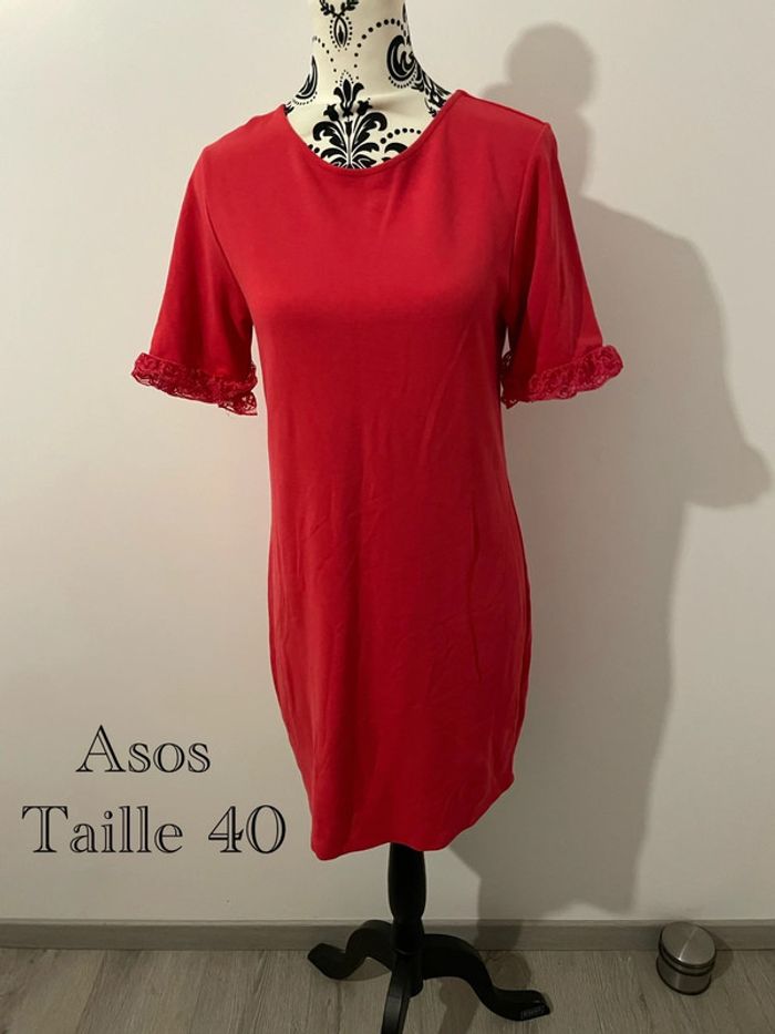 Robe rouge ASOS femme 40 – Chic élégante avec manches dentelle soirée/été - photo numéro 1