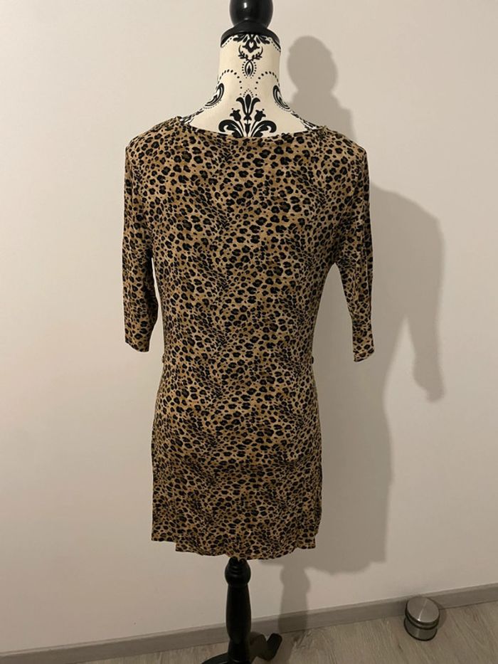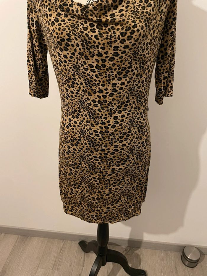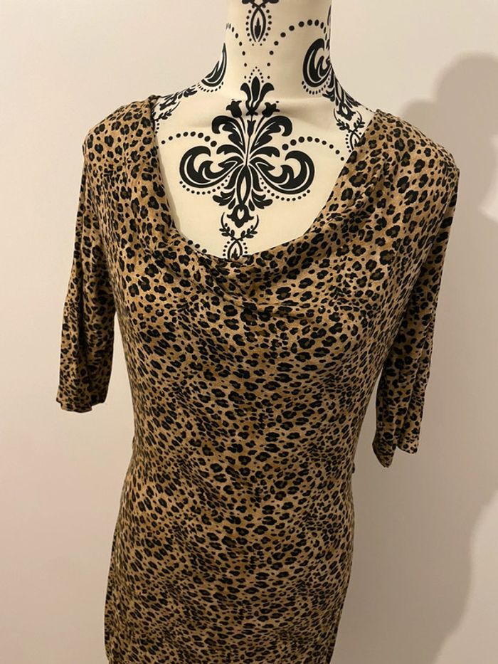 Son imprimé léopard tendance et sa coupe près du corps mettront vos formes en valeur. Le décolleté drapé (col bénitier) apporte une touche d'élégance.
