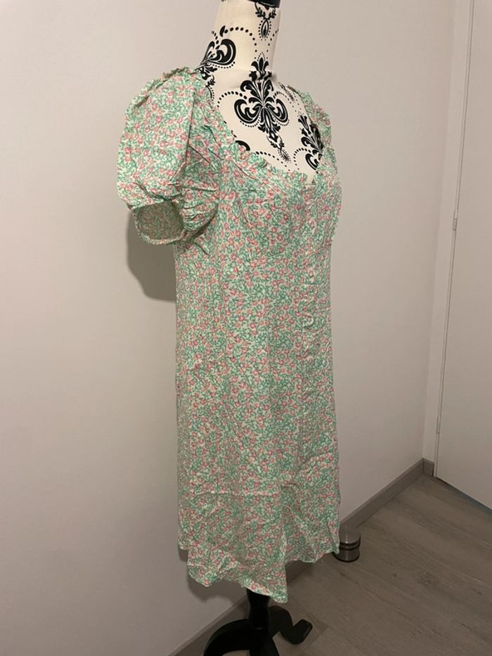 Robe Primark fleurie verte et rose, style champêtre, taille 44 - photo numéro 2
