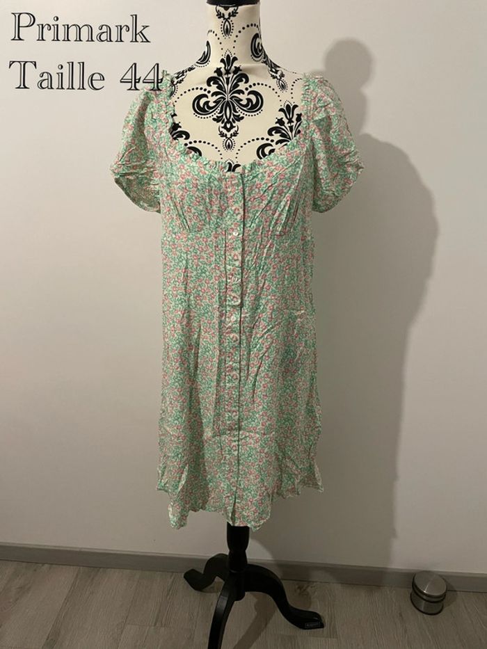 Robe Primark fleurie verte et rose, style champêtre, taille 44 - photo numéro 1