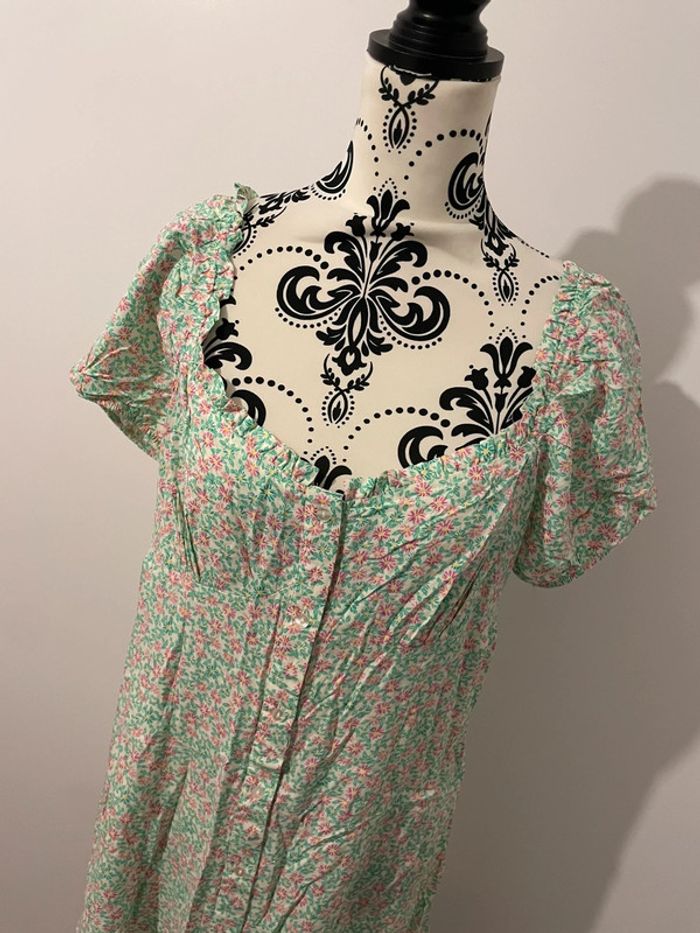 Robe Primark fleurie verte et rose, style champêtre, taille 44 - photo numéro 3