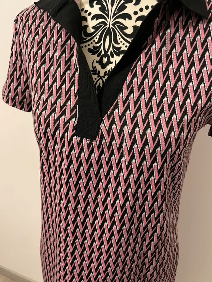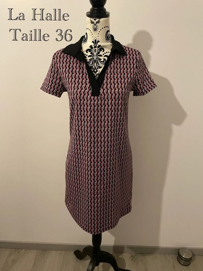Robe polo La Halle, motif géométrique rose et noir, taille 36 - photo numéro 1