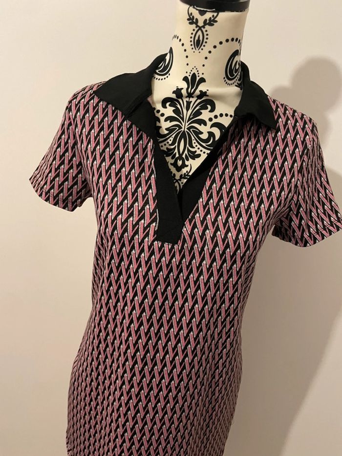 Robe polo La Halle, motif géométrique rose et noir, taille 36