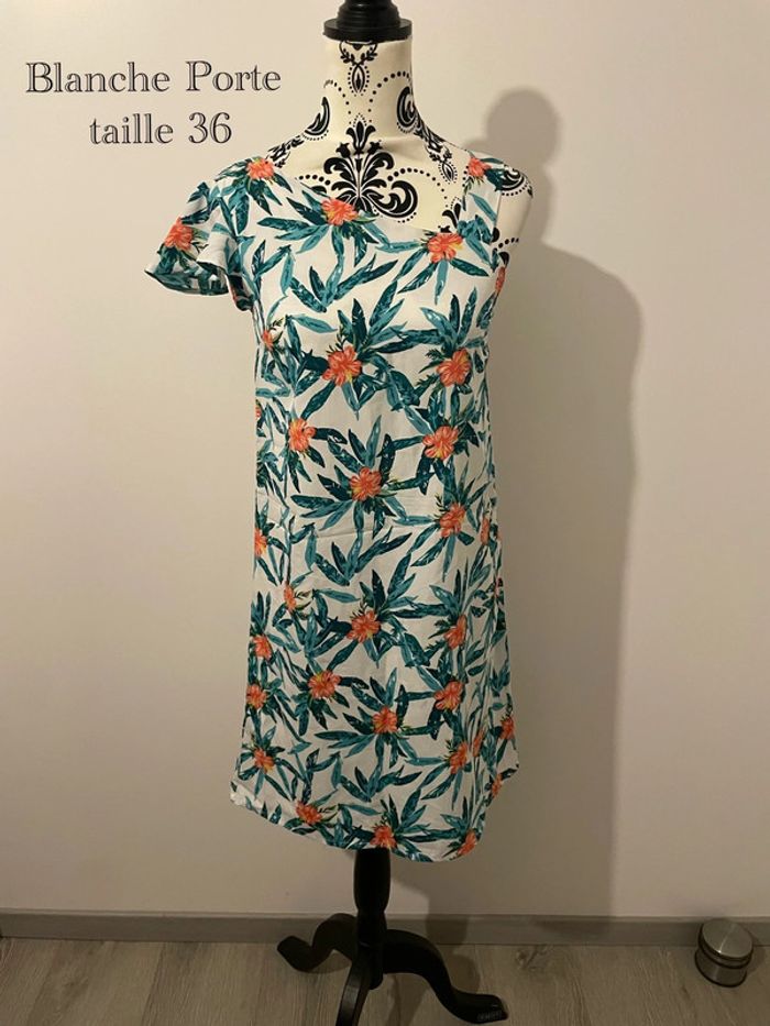 Robe d'été Blanche Porte à motifs tropicaux taille 36 - photo numéro 7