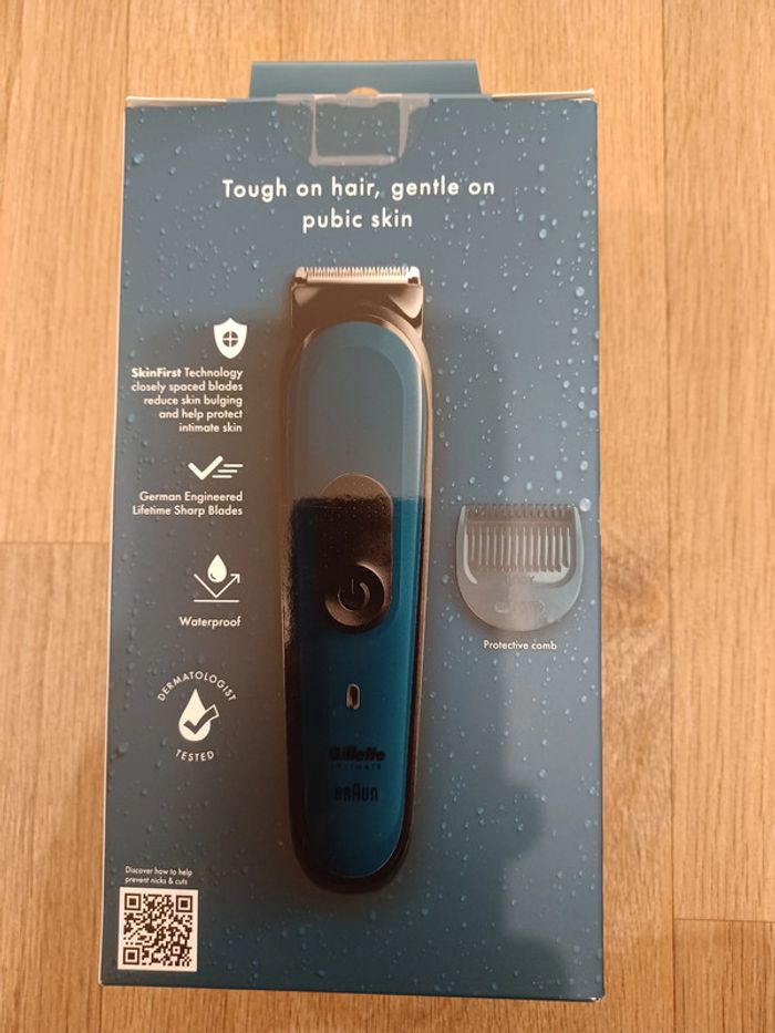 Envoi rapide Tondeuse Gillette Intimate, Doux & facile pour la zone intime : pour tailler facilement et en toute sécurité Système de coupe SkinFirst conçu pour aider à réduire les irritations dues au rasage Lames en métal inusables Jusqu'à 80 minutes d'autonomie Étanche, peut s'utiliser sous la douche