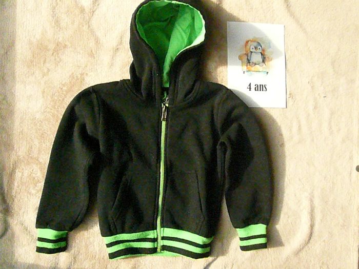 Veste zippée noire - taille 4 ans. Matière sweat. Très bon état. N’hésitez pas à regarder mes autres annonces pour réduire les frais de port.