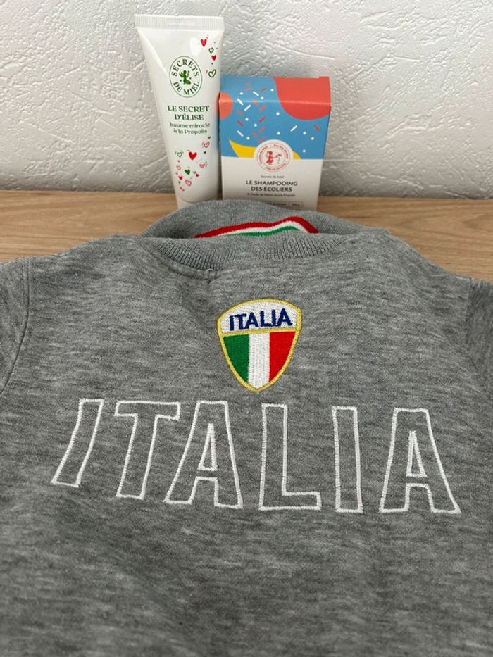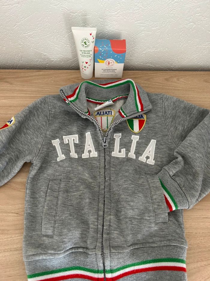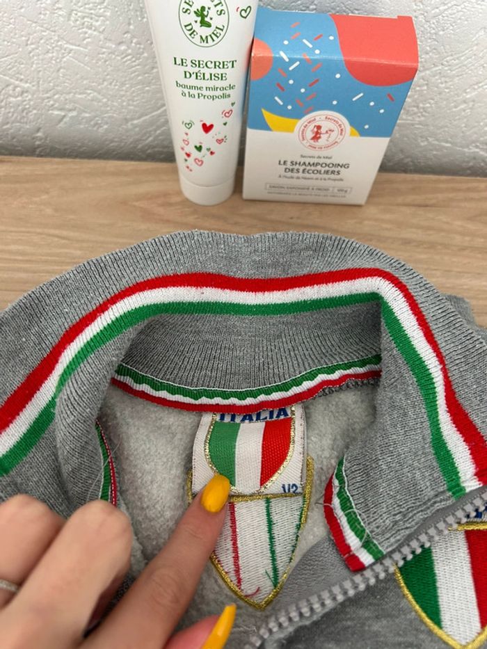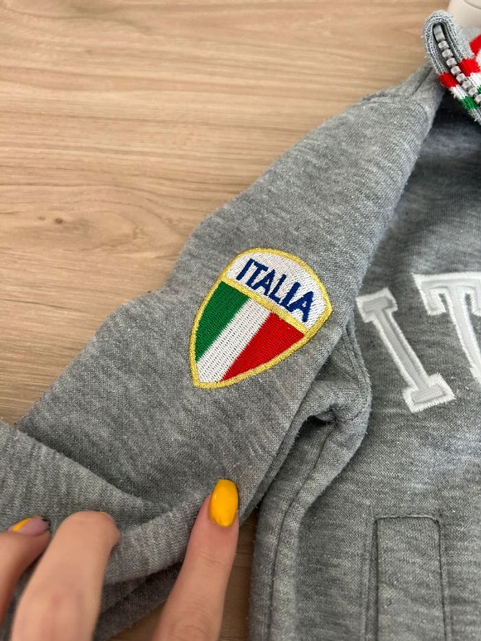 🇮🇹 Affichez vos couleurs avec style ! La veste grise possède des inscriptions brodées "ITALIA" sur le devant. Le col zippé est agrémenté de rayures rouge, vert et blanc, inspirées du drapeau italien. Les poignets et l'ourlet sont dotés d'un motif à rayures assorti, ajoutant une touche de couleur. 🇮🇹 - 📏 Taille : 3-4 ans - 🏷️ Marque : Non spécifiée - 🌿 Matières : Non spécifiées - 🎨 Couleur : Gris 1. 🌈 Parfaite pour afficher votre amour pour l'Italie lors d'une journée décontractée. 2. 🧢 Portez-la avec un jean et des baskets pour un look tendance. 3. 📸 Idéale pour un voyage ou une sortie sportive. #vesteitalia #styleitalien #enfants #modeenfant #vestegrise #zip #lookdécontracté #vêtementenfants #tendance #moderne #casualwear #rayures #chic #sport #voyage