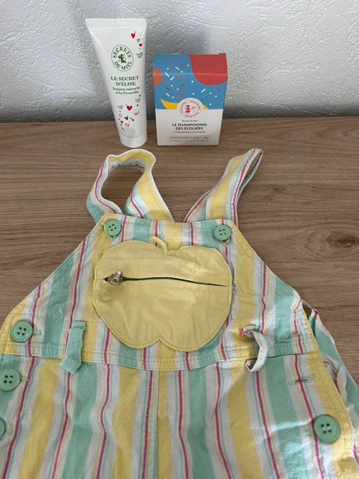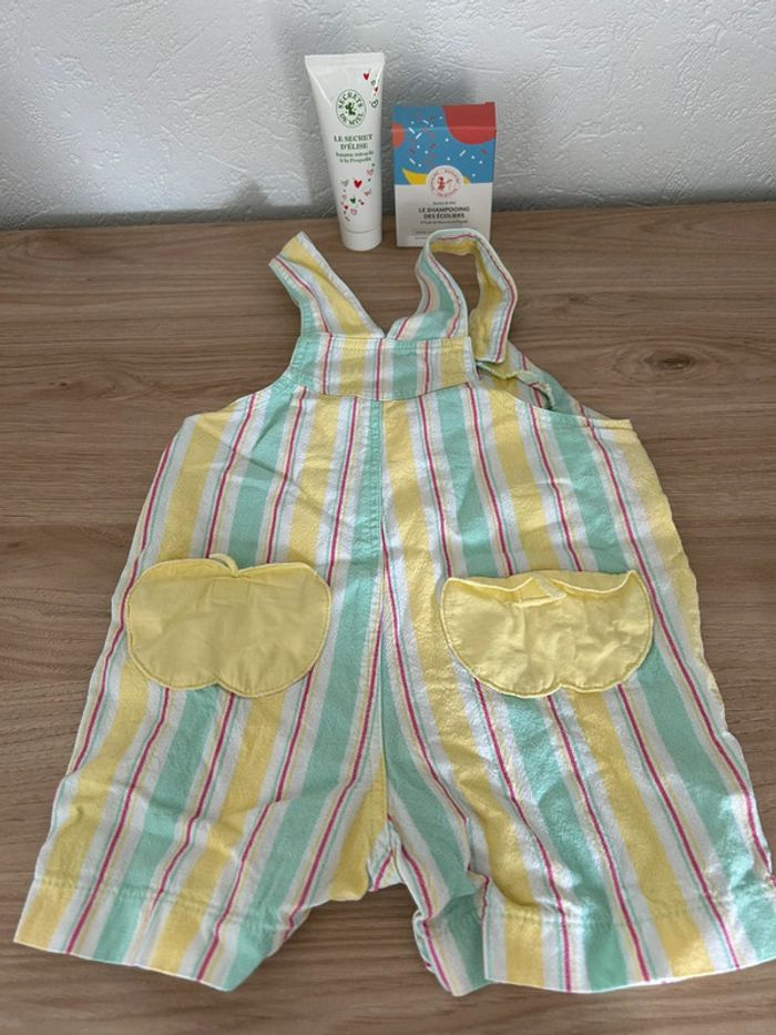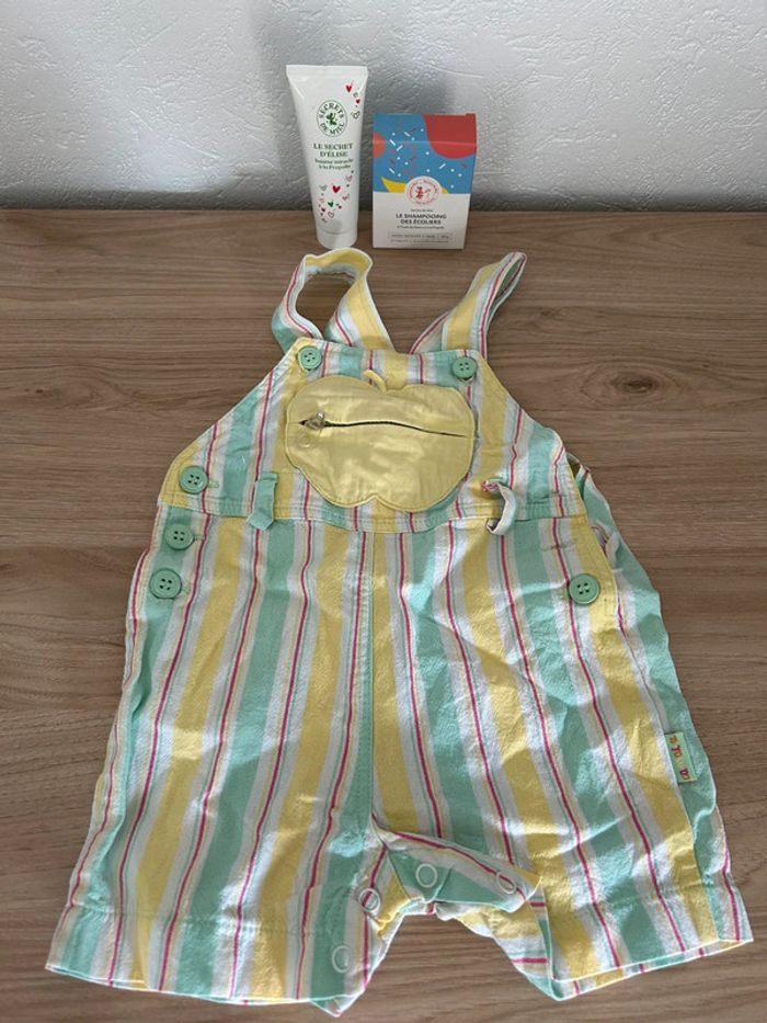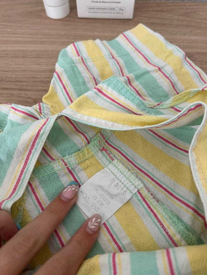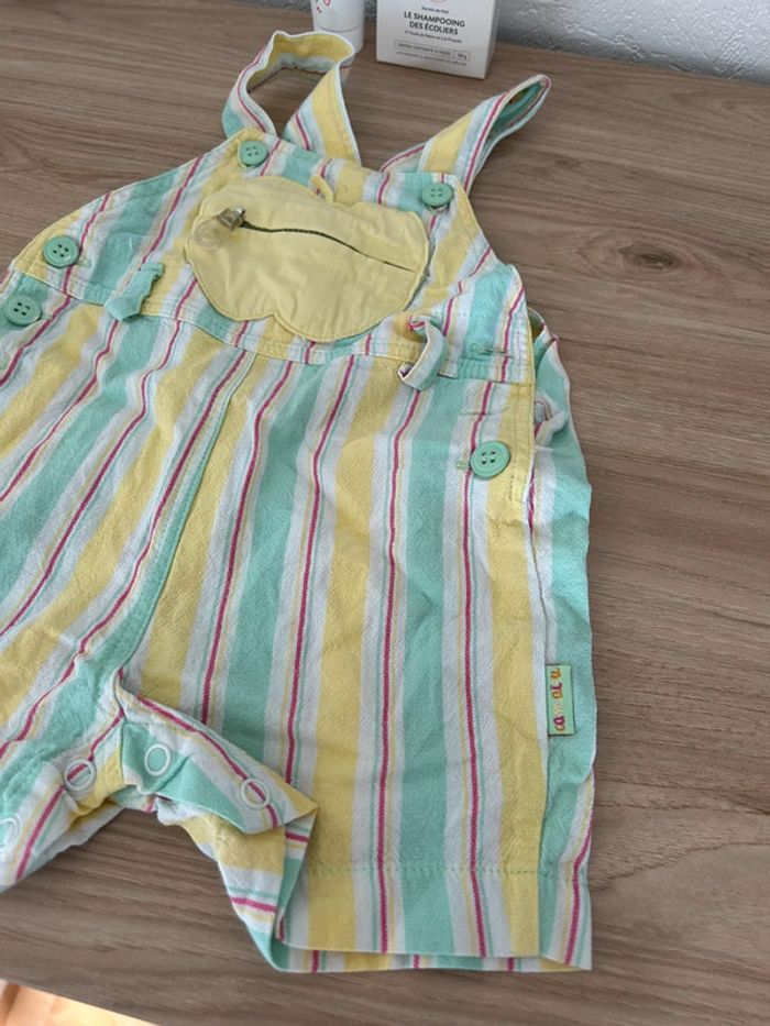 🌟 Parfaite pour un look estival coloré ! Cette salopette présente des rayures colorées en jaune, vert, rose et blanc. Elle est équipée de boutons vert clair sur les bretelles pour une ouverture facile. 🌈 Un motif de poche jaune est situé à l'avant, ajoutant une touche ludique et pratique. Les boutons sont en plastique et assortis aux nuances de l'ensemble. La salopette est en coton, idéale pour la peau sensible de bébé. 🌼 Les coutures semblent bien réalisées, assurant une bonne durabilité. Aucune imperfection notable visible sur la salopette. - 🎈 Taille : 6 mois - 🏷️ Marque : Indisponible - 🔍 Matières : 100% coton - 🎨 Couleurs : Rayures multicolores - 📝 État : excellent état 👗 Associez cette salopette avec un t-shirt blanc pour une tenue fraîche et estival ! 🚼 Parfaite pour une journée ensoleillée au parc. 🧢 Ajoutez un petit chapeau pour un look encore plus adorable ! #bébé #salopette #étée #enfant #rayures #coloré #tenuebébé #coton #bélichemignon #instababies #modenfant #tenueété #parentalisé #lookbébé #fashionkid
