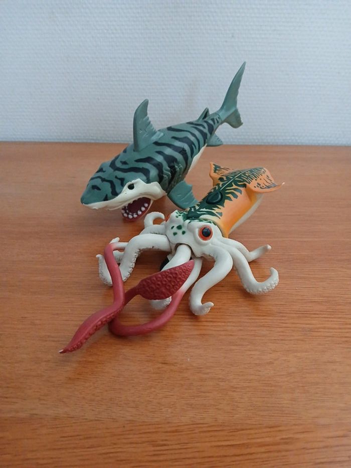 Bonjour !! Dans l'état. Le requin ferme sa bouge quand on appuie sur son aileron. La pieuvre bouge ces tentacules quand on appuie sur le bouton. #mersteph86 #animauxsteph86 #chapmeisteph86 #figurinesteph86 #jouetsteph86