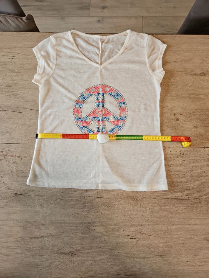 T shirt blanc cassé à manches courtes, transparent, avec sequins, taille L, nickel - photo numéro 7