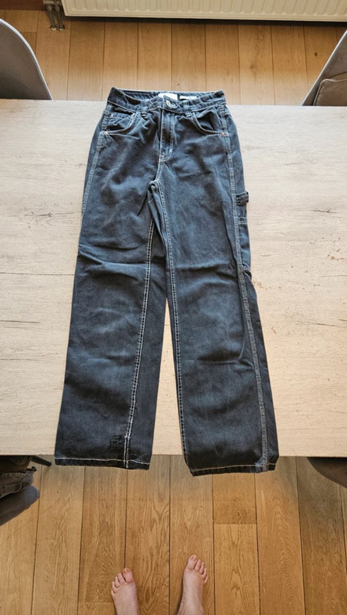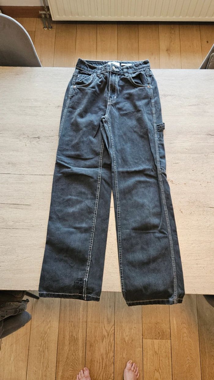 Pantalon gris trés foncé, straight, Bershka, taille 34, nickel - photo numéro 1
