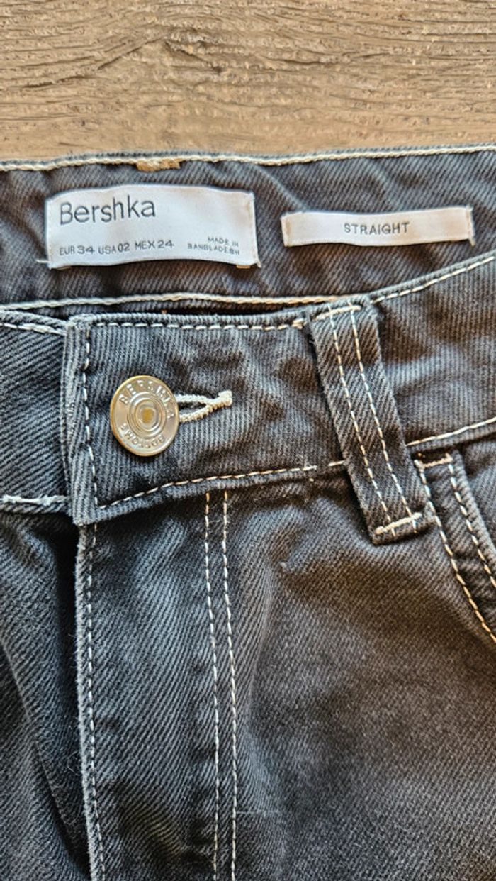 Pantalon gris trés foncé, straight, Bershka, taille 34, nickel - photo numéro 3
