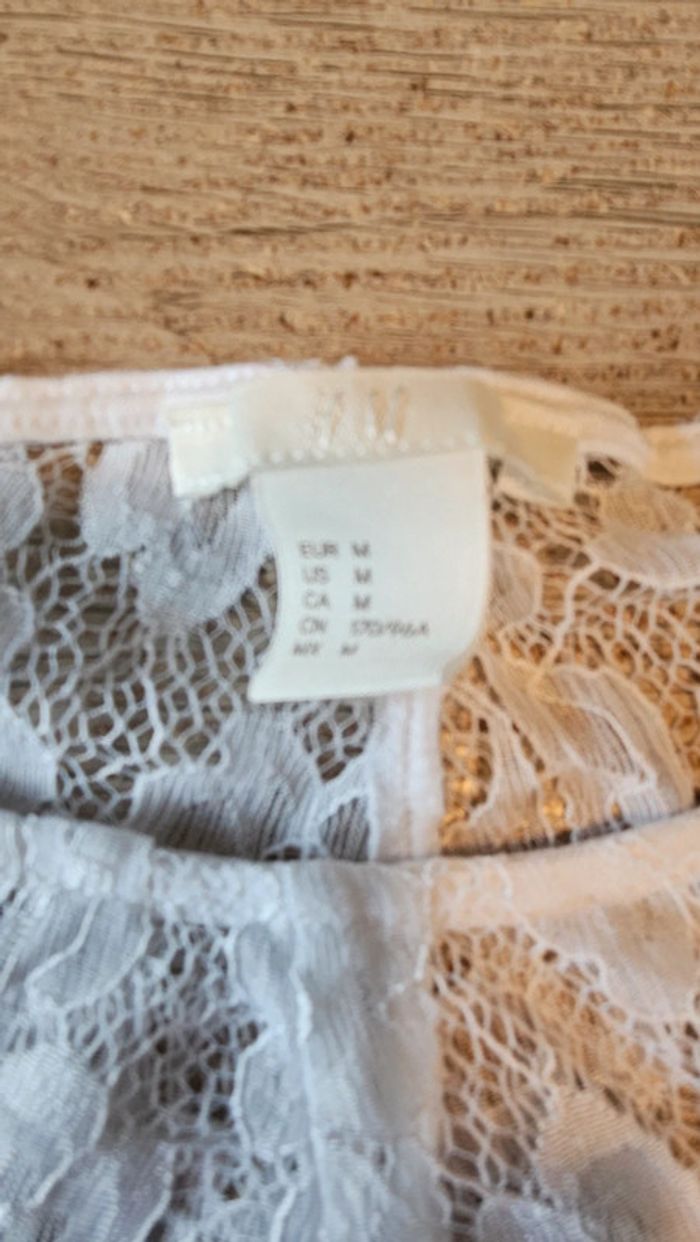 Blouse blanche à manches courtes avec points bleus et dentelles, H&M, M, nickel - photo numéro 5