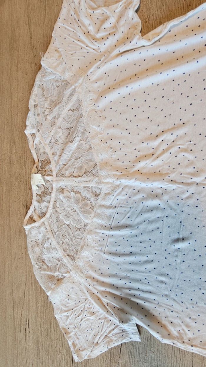 Blouse blanche à manches courtes avec points bleus et dentelles, H&M, M, nickel - photo numéro 2