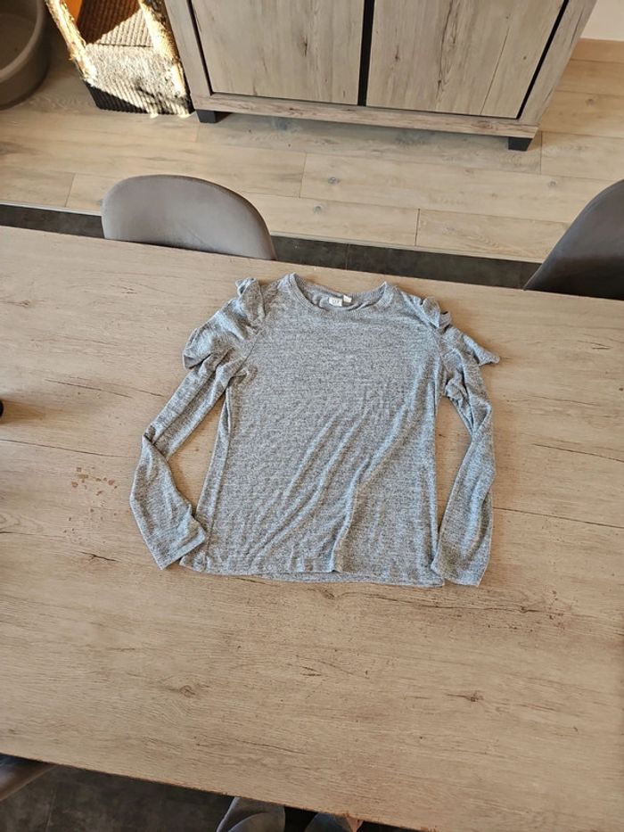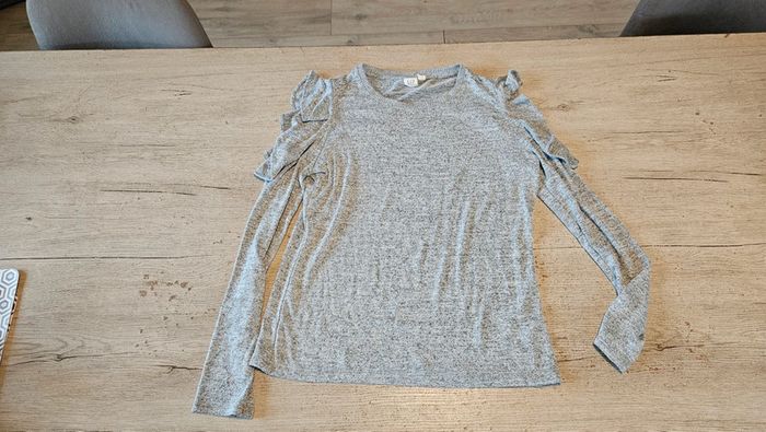Joli pull léger a col rond. Manches longues ouvertes aux epaules avec froufous. Il n a ete mis qu une fois. Convient bien pour du M #deborahtock_femmeM