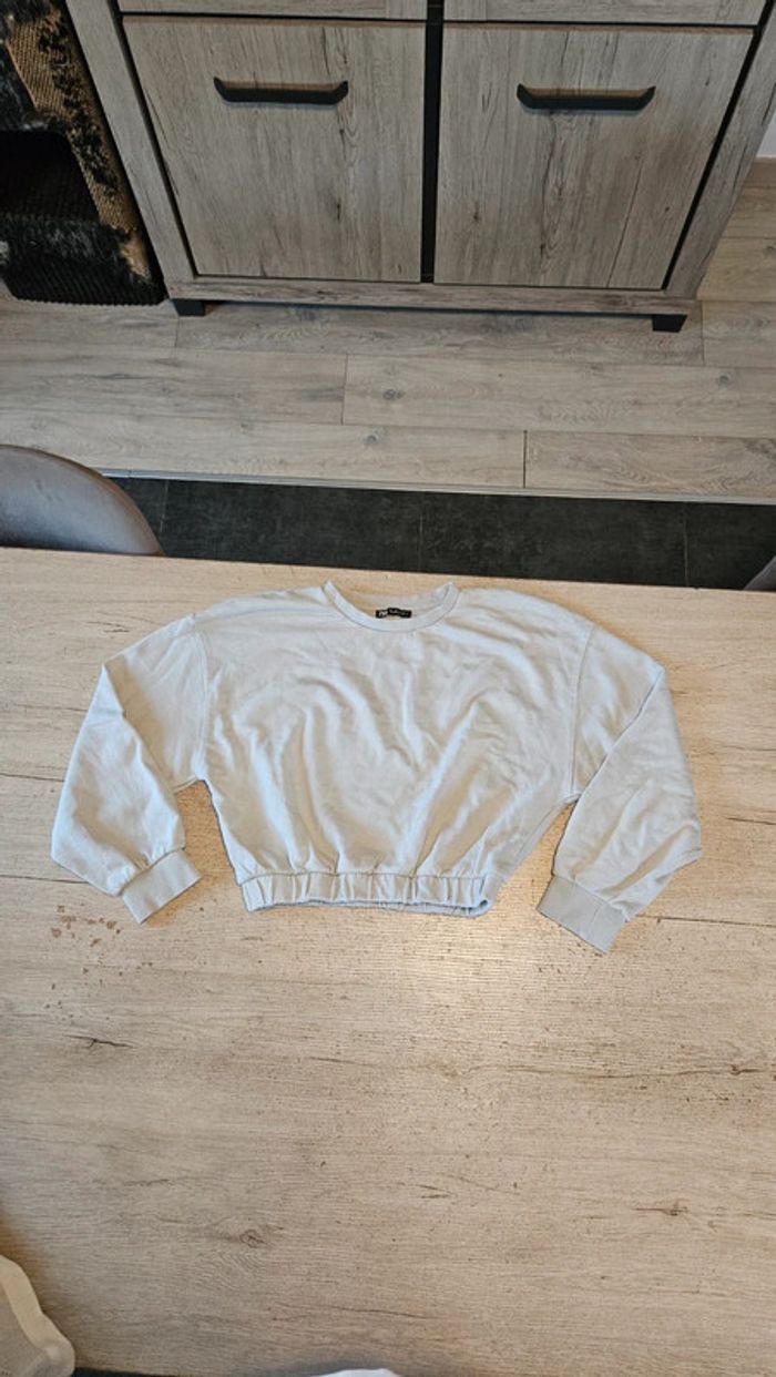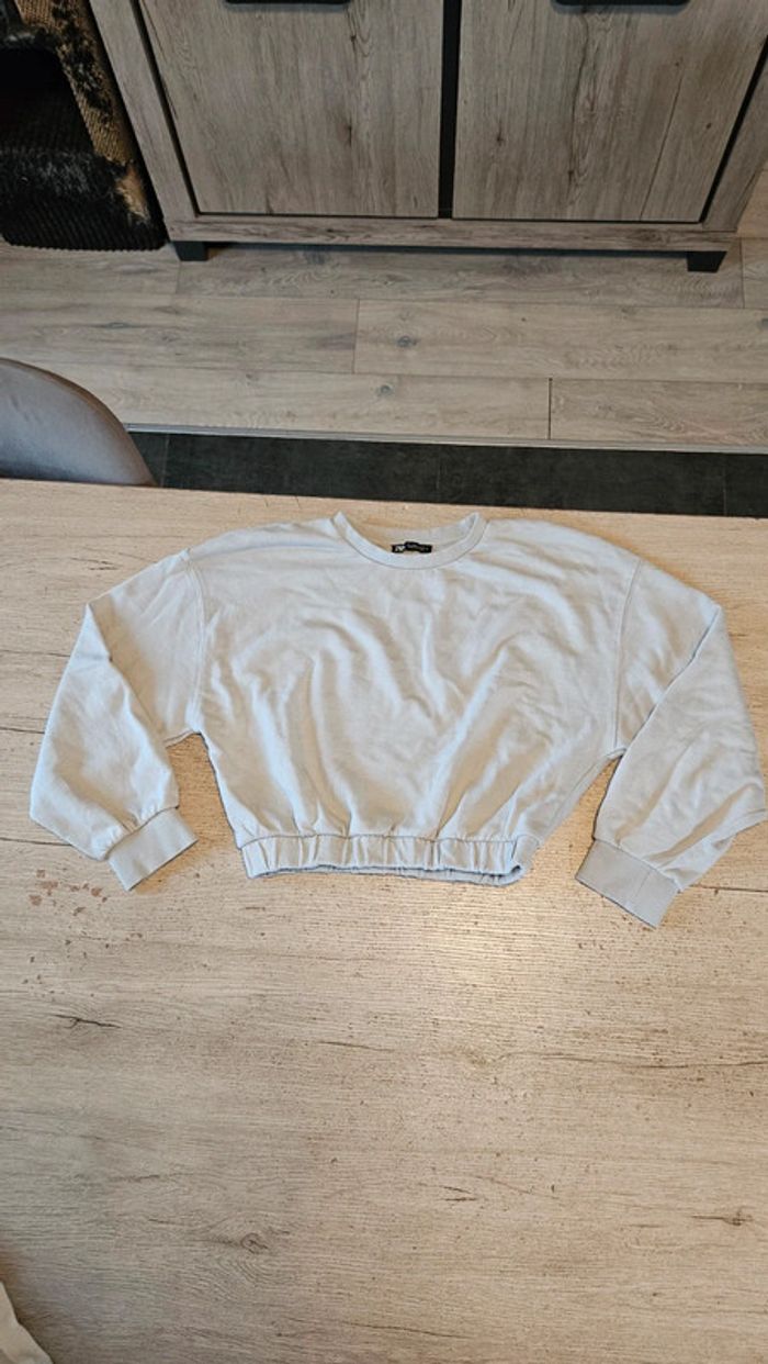 Sweat court gris bleu, à manches longues, Zara,  taille 38/40 - photo numéro 1