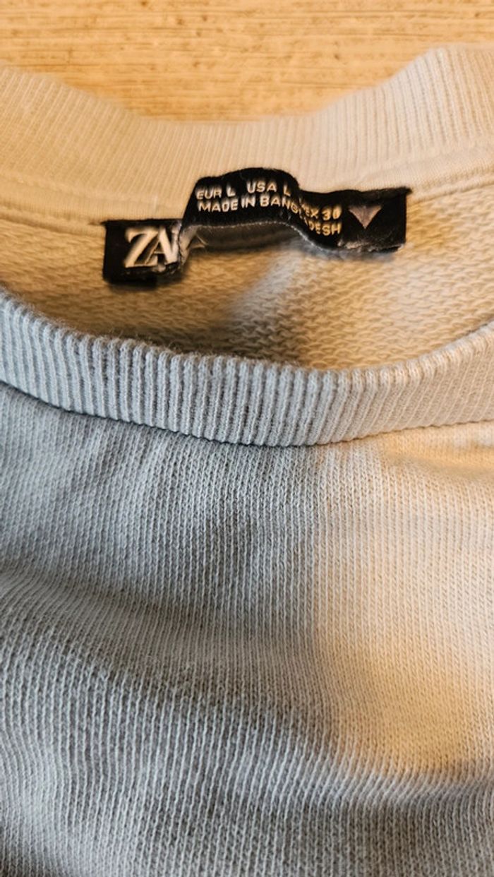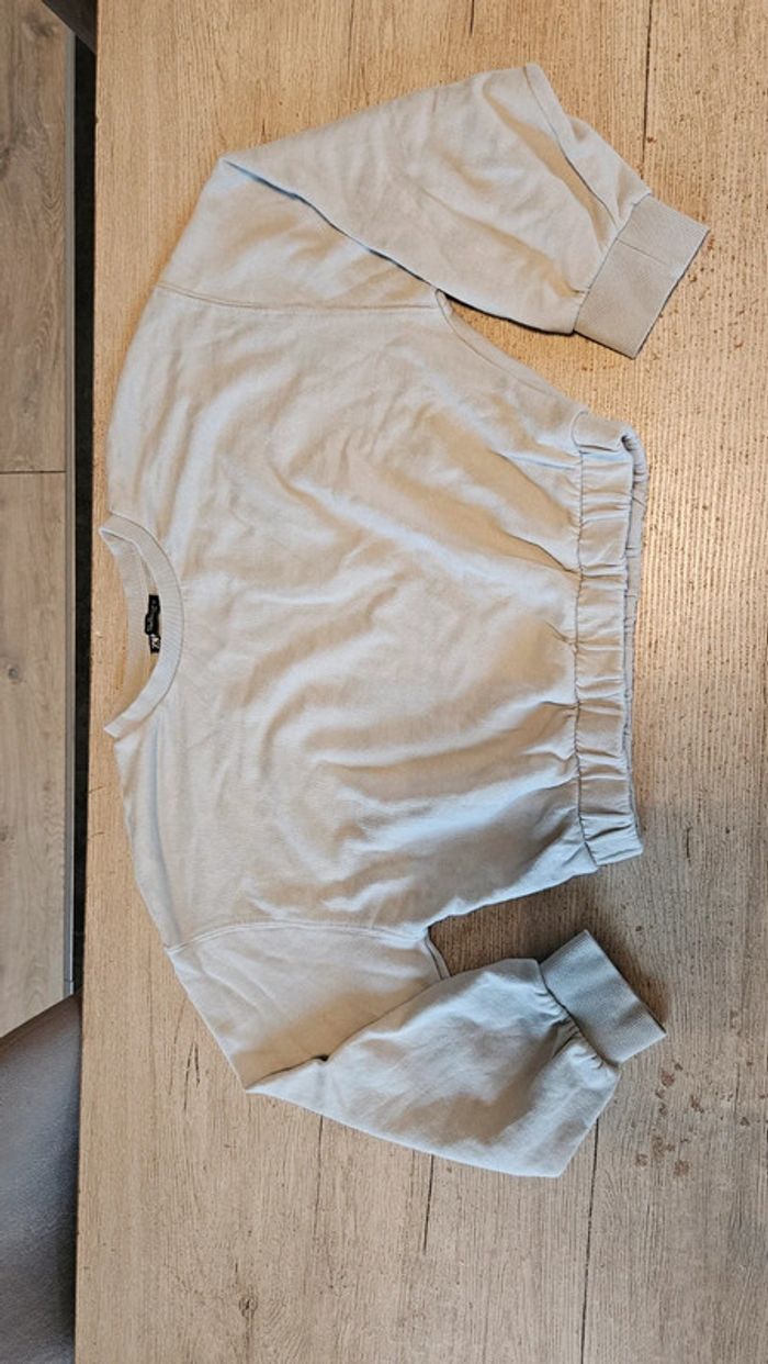 Sweat court gris bleu, à manches longues, Zara,  taille 38/40 - photo numéro 2