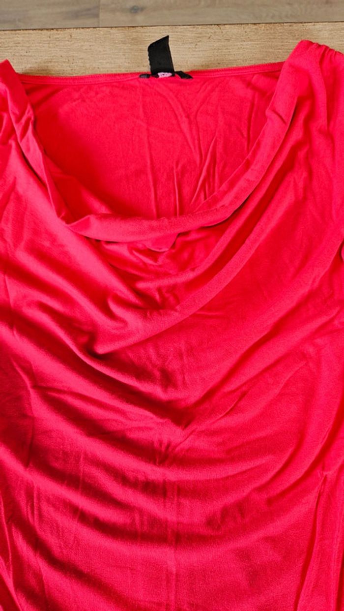 Jolie blouse à col large blousée. Elle est rose foncé tirant sur le rouge. Jamais mise mais lavée. Convient bien pour du M. Elastique #deborahtock_femmeM