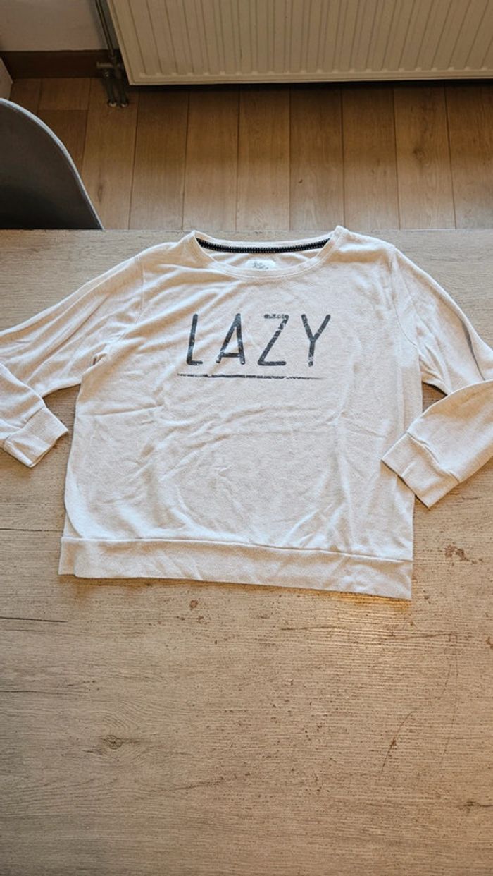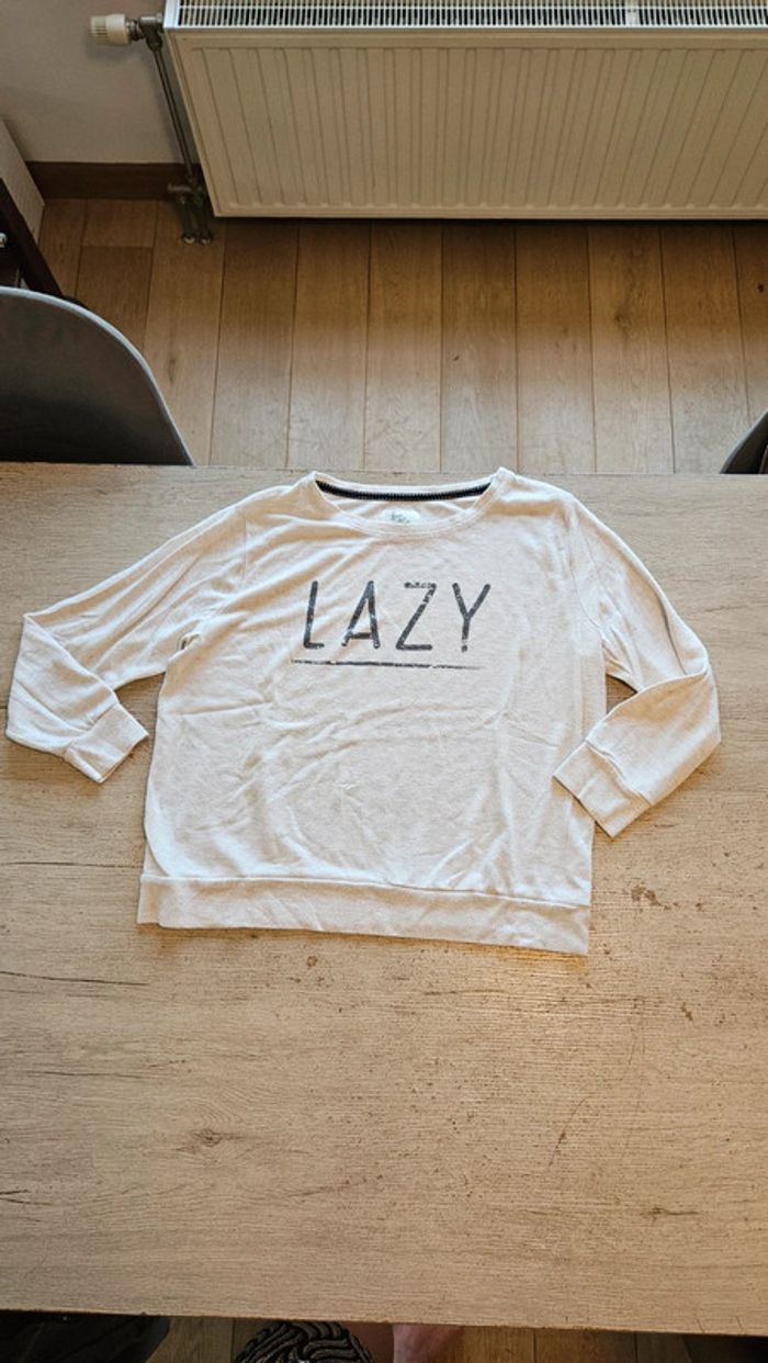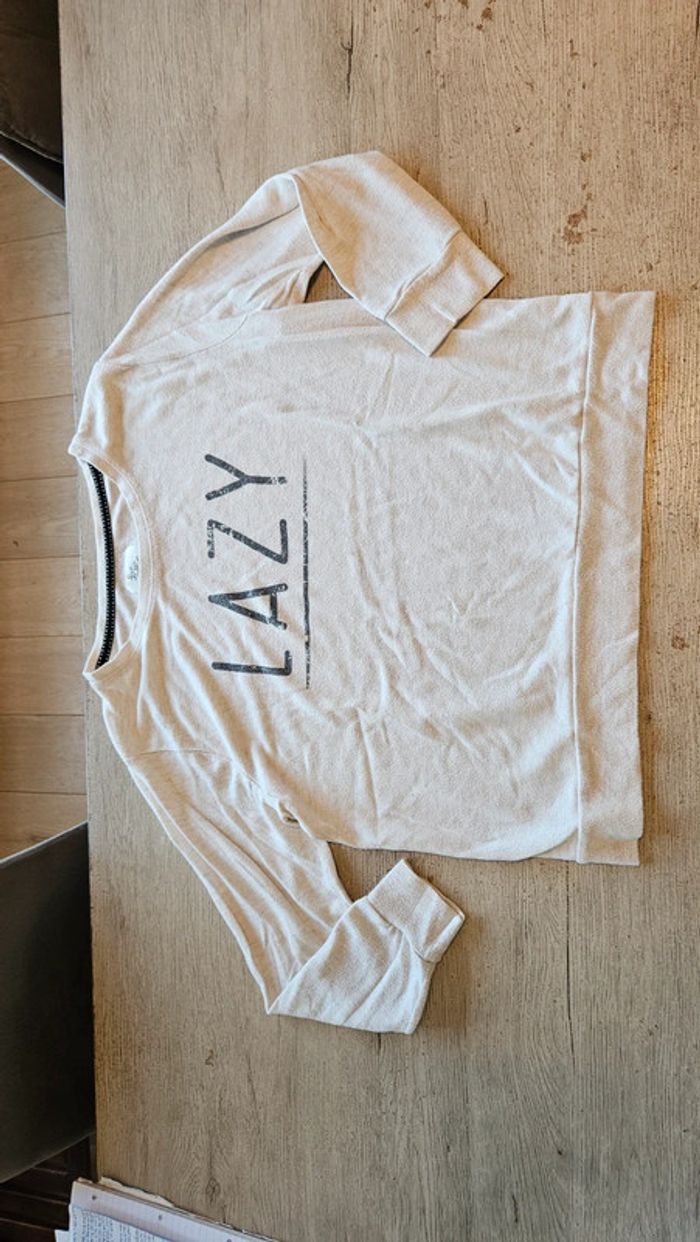 Pull léger à manches longues, col rond. Matière douce. Il a été mis mais peu. Inscription grise. Convient pour du M ou du petit L #deborahtock_femmeL