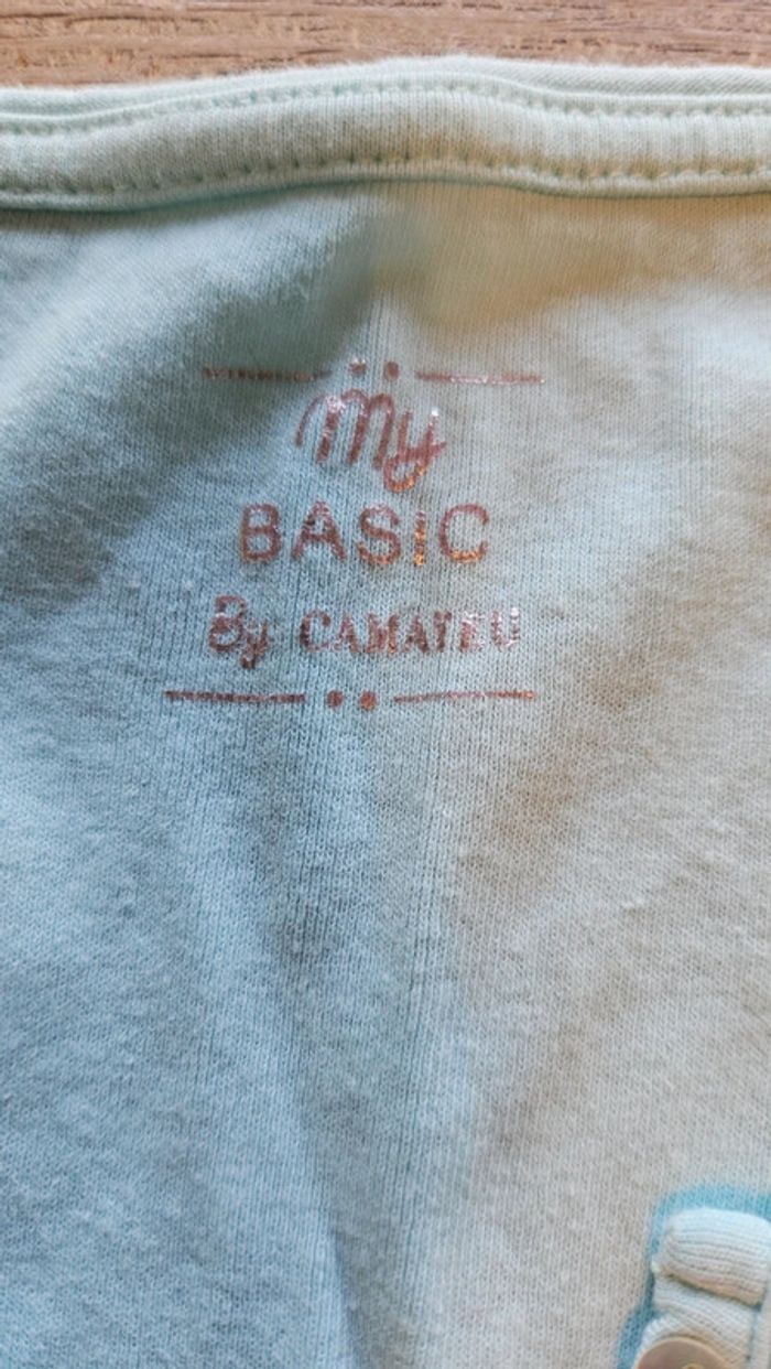 T shirt bleu très clair à manches courtes, boutons au col, Camaïeu, XL - photo numéro 3