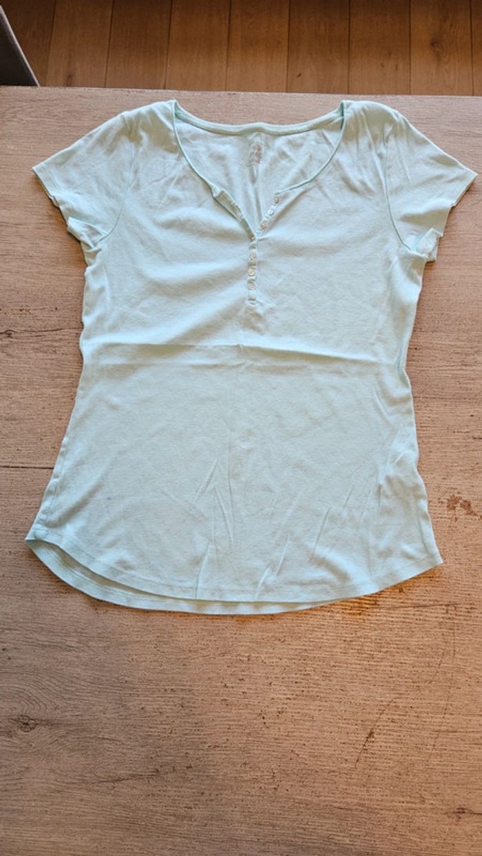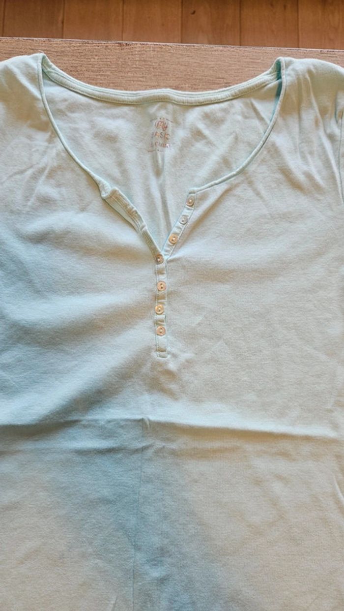 T shirt bleu très clair à manches courtes, boutons au col, Camaïeu, XL - photo numéro 2