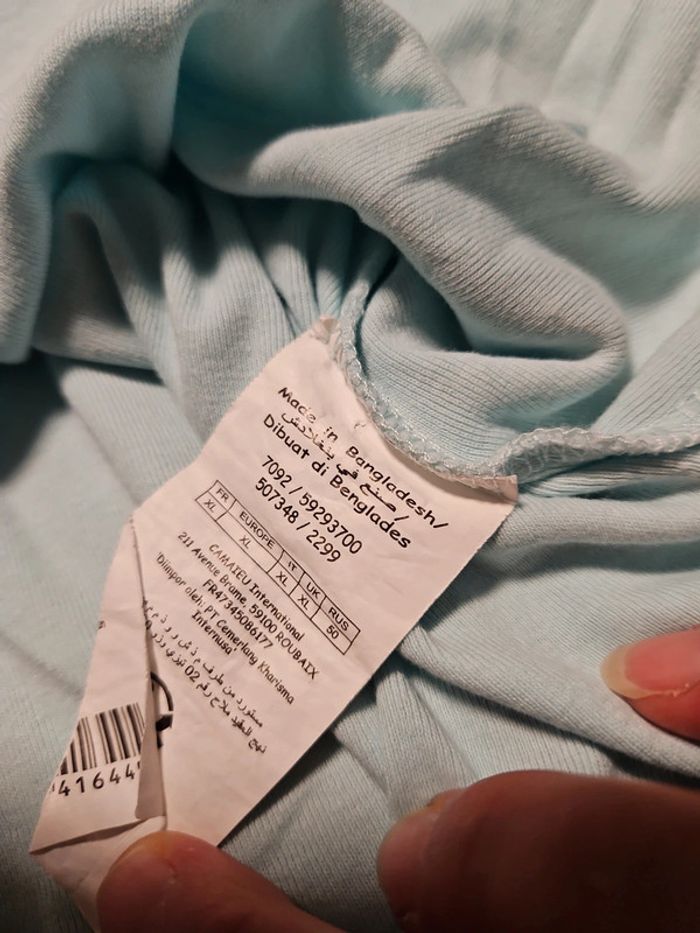 T shirt bleu très clair à manches courtes, boutons au col, Camaïeu, XL - photo numéro 4