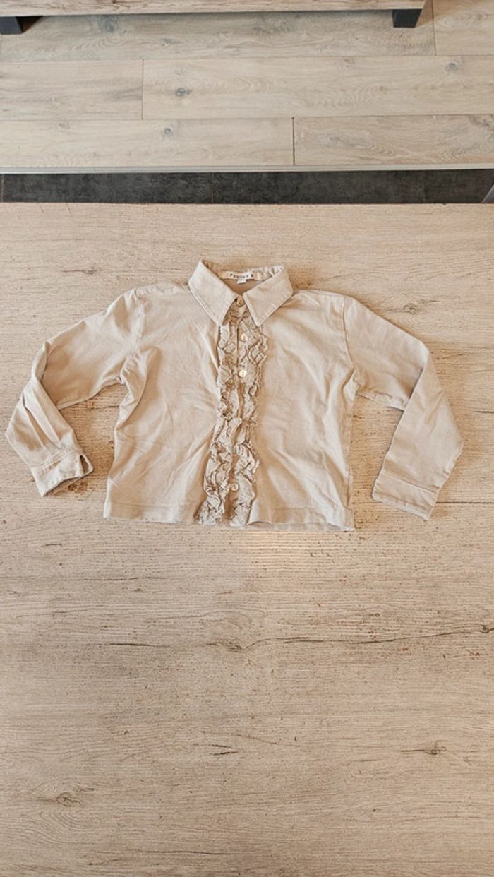 Chemise beige foncé à manches longues, avec froufrous, Pauline B. 8 ans, neuf - photo numéro 1